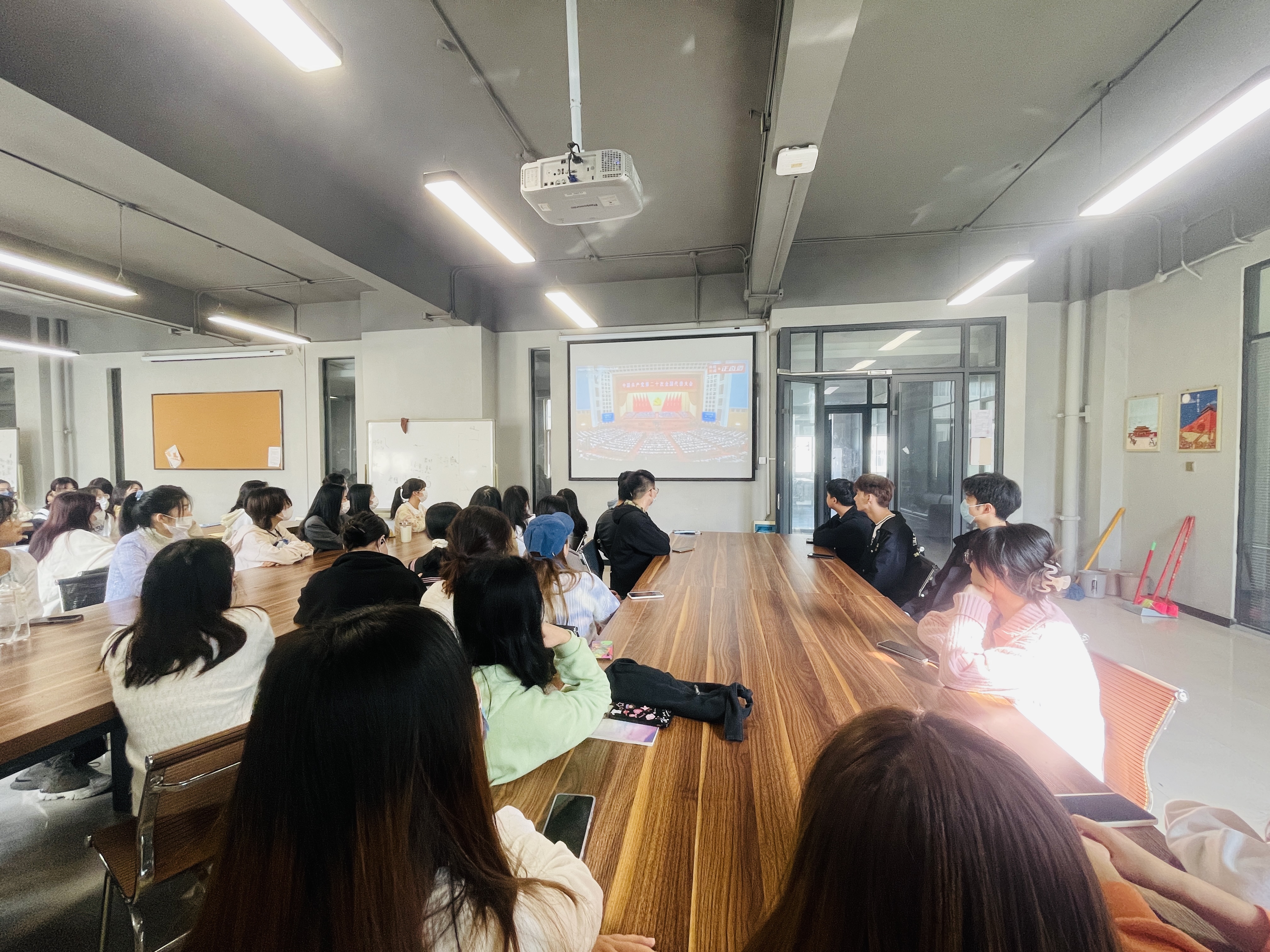 我院在艺术楼三楼会议室、工作室和A合六教室分别设立教师和学生分会场,院领导班子成员、全体教职工以及2022级新生集中收看了开幕会直播实况,仔细聆听习近平总书记的报告。