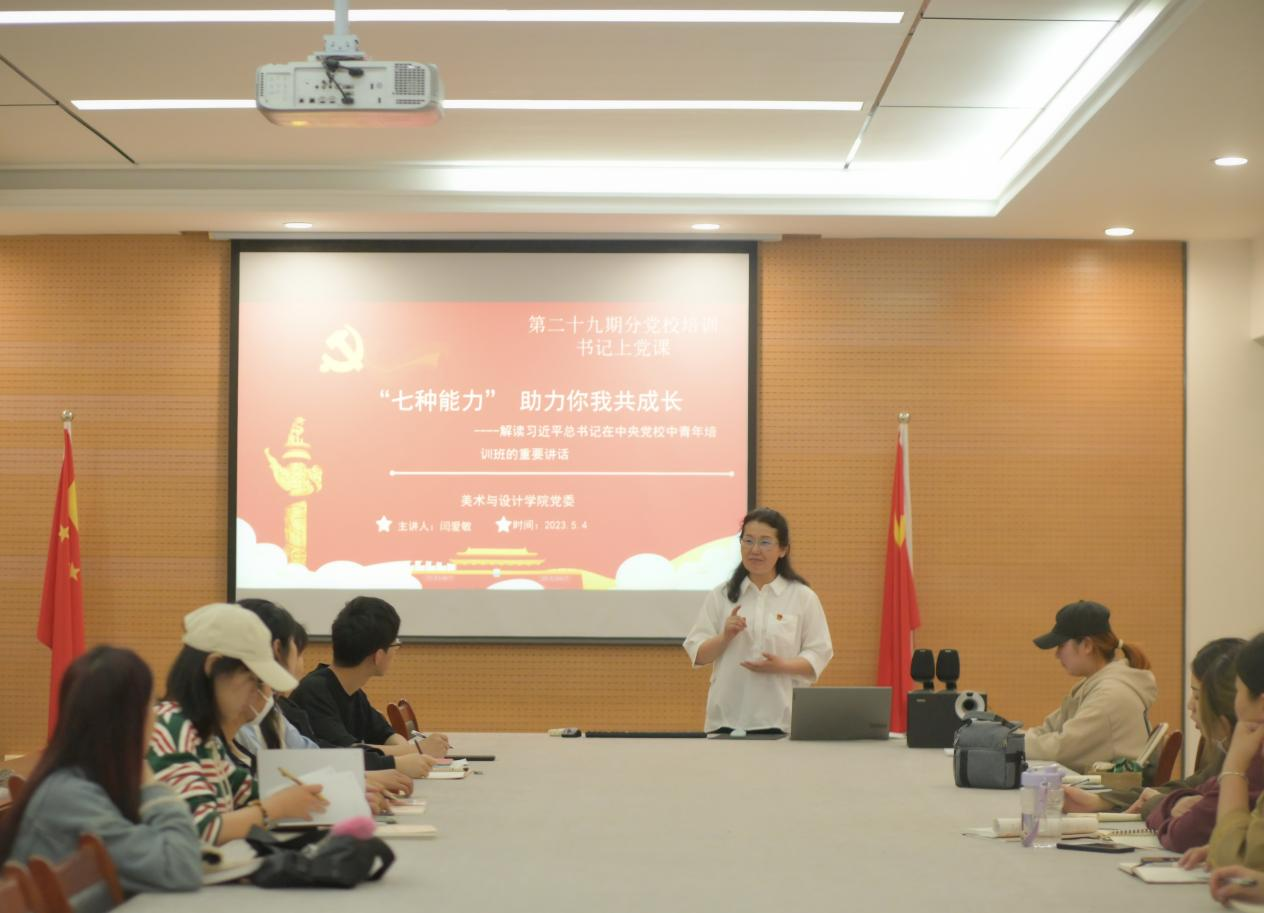 为进一步加强入党积极分子教育,提高入党积极分子的思想政治素质,2023年5月4日19时,我院在艺术楼三楼会议室开展第二十九期分党校培训,院党委书记闫爱敏做了题为“‘七种能力’助力你我共成长”的专题党课,全体分党校学员参加学习。