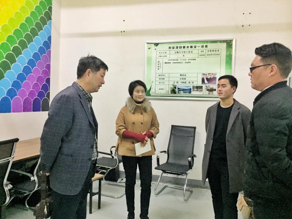 11月17日上午,美术学院党总支部书记马忠、副书记吴艳艳及相关人员到创新创业园看望我院入驻众创空间的创业团队。