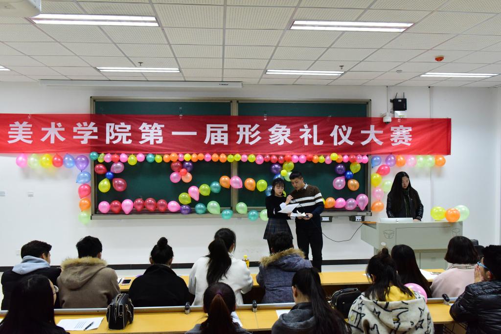 比赛中,各参赛代表队发挥出色,不仅展示了同学们的外在形象,更体现了大学生的朝气,演绎出同学们对大学生活的热爱,展示了同学们良好的精神风貌。兼具趣味性和学习性的比赛方式,吸引了很多同学主动来学礼、知礼、懂礼、习礼、行礼,塑造优雅、文明、诚信、礼貌的良好形象。本场比赛内容丰富,包括了舞蹈、T台走秀、情歌对唱、个人独唱、相声等20多个节目,比赛过程中精彩不断,高潮迭起, 每个节目经过精心策划、编排,赢得到了在场观众和评委们的一致好评。本次活动共参加50余人,经过激烈的选拔,最后评选出一等奖三名 ,二等奖六名 ,三等奖七名,16级美术学四班获得了“最佳集体奖”。