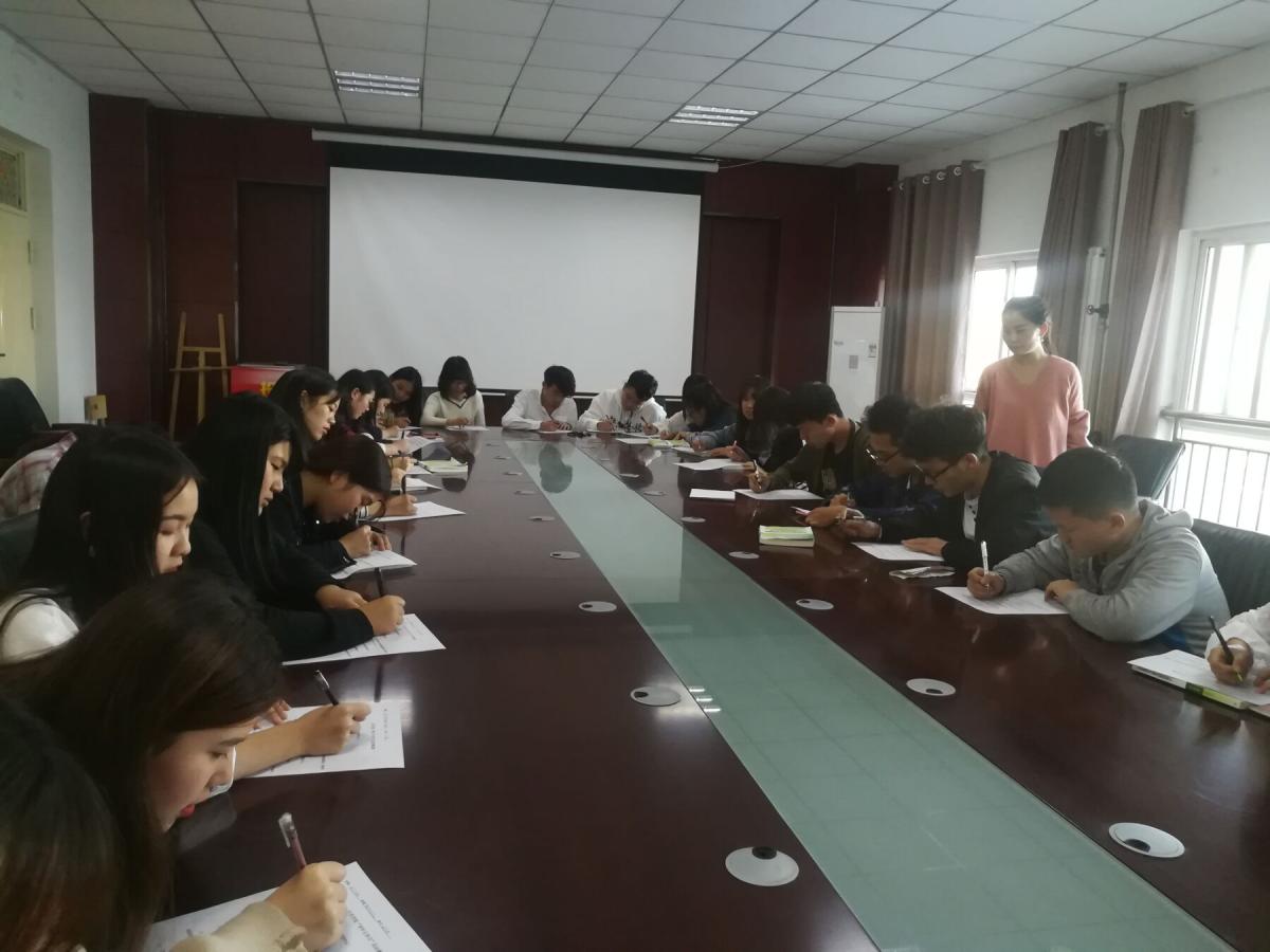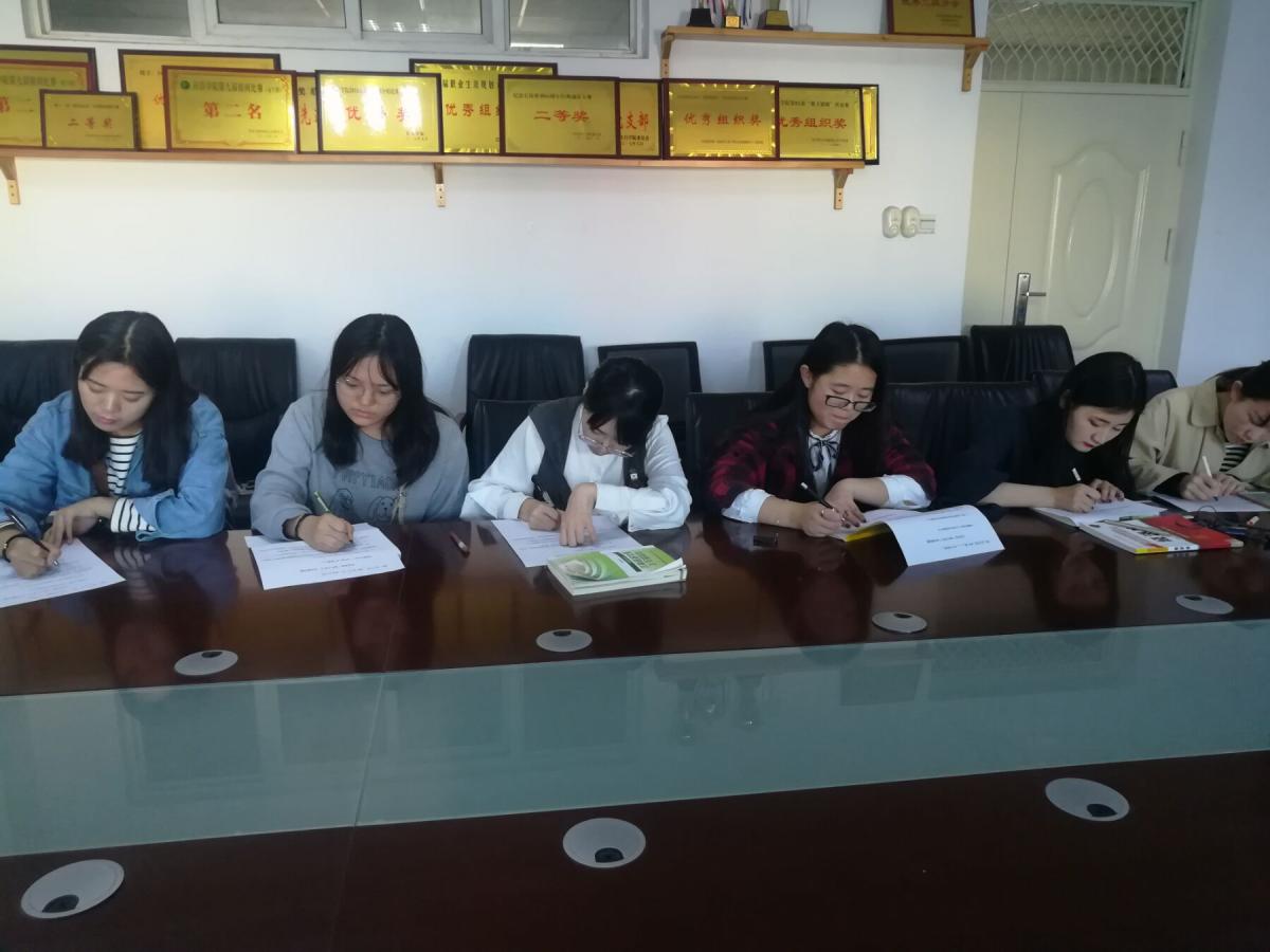 为贯彻落实团中央、团省委《关于在全团实施“青年大学习”行动的方案》,大力加强共青团的政治性和先进性建设,全面提高我院共青团干部综合素质,10月29日下午,我院在会议室进行“青年大学习”团干部团员应知应会知识测试。