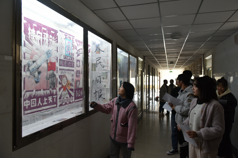 2019年11月19日,由我院团学会主办宣传部承办的橱窗大赛作品展在艺术楼四楼展出。此次橱窗大赛以初心永恒”为主题,18、19级各班为单位参加比赛,党总支副书记吴艳艳和温甜老师带领院团学会主席团、各班代表组成评委团进行评选。