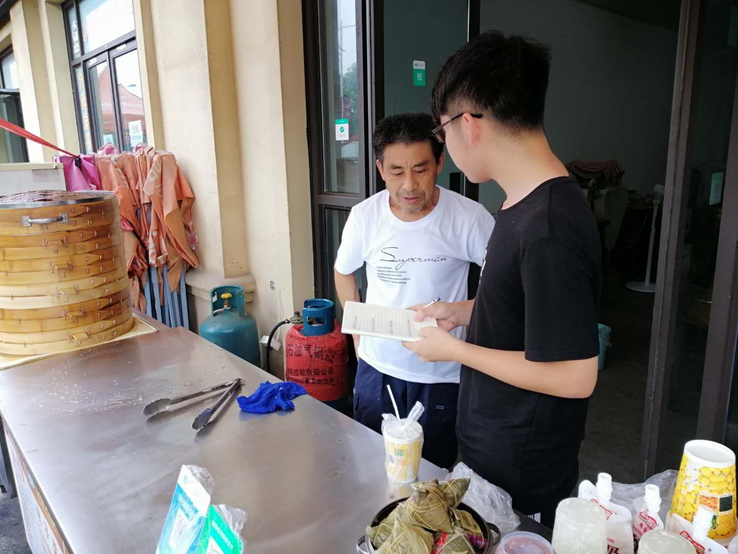 同一时间,施龙海同学探访了路边早点摊位的老板,在征得老板的同意后,询问了疫情复工后人们早饭购买的变化情况,并与老板讲述了疫情中我们国家表现出来的强大实力。令人惊喜的是,老板曾在疫情困难时期为附近的医院提供过免费早餐,“之前视频里看到前线医护人员边哭边吃泡面,心想他们付出那么多汗水,怎么能只吃泡面呢?虽然我没有条件供饭给一线医护人员,但我想为附近医护人员做做贡献。”老板说到。疫情中这些平凡的小人物,却做着伟大的事,他们就在我们周围,比我们更艰难辛苦,却为我们筑起了一片绿洲。
