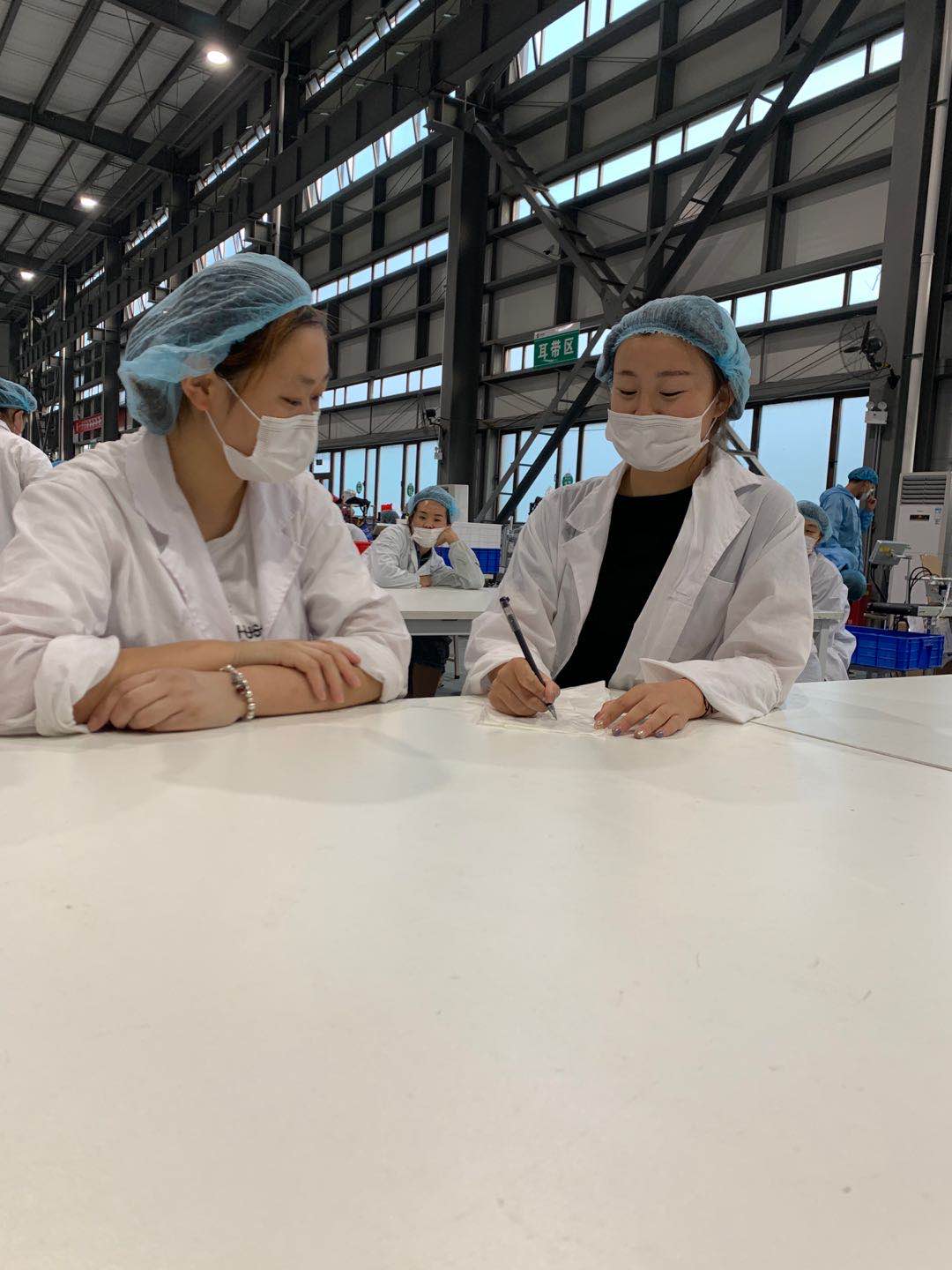 6月27号,大家继续投入到了如火如荼的社会实践活动当中。在进行实地考察和交涉后,郭雅欣同学申请进入到了家乡的口罩生产厂进行宣讲和采访。为了保证口罩的清洁生产和卫生安全,她只被允许进入质检车间。进入车间后,她找到了一组不太忙碌的质检小组,进行了关于抗疫的演讲,感谢工人们日夜不休地提供口罩和防护用品,也向质检小组检测时一丝不苟的工作态度致敬。厂里的员工张阿姨告诉郭雅欣,自己没什么文化,“看到新闻说口罩有缺口,很多医院和药房都急需,就赶紧回厂复工,能生产多少是多少,希望尽自己的绵薄之力为社会作一些贡献。”工人们用自己的行动表达了对社会疫情防控的关切。