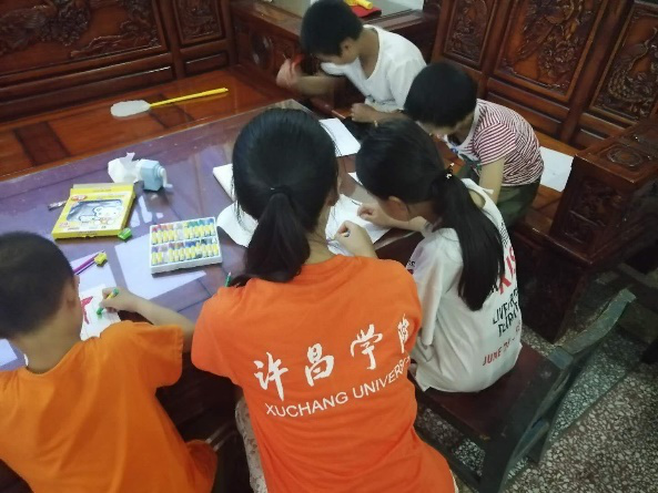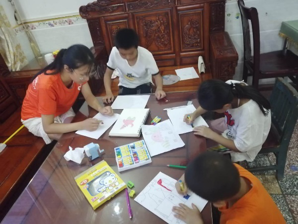 许昌学院美术与设计学院“弘扬家乡新风尚,描绘美丽新农村”社会实践队队员韩启盼邀请村里贫困儿童,留守儿童到家里学习美术绘画,队员韩启盼提供油画棒,彩铅,素描纸等美术绘画工具,带领孩子们一起画派大星、海绵宝宝、小哪吒等动漫卡通人物,让孩子们通过自己的双手把喜欢的卡通人物画到纸上,提高孩子们的动手能力,培养孩子们对美的感知,增强孩子们的自信心。队员韩启盼在7月2日的实践总结写道:今天教授一些村里的孩子绘画,因为他们没有接触过正规的训练,所以教起来还是很困难的。但是看着他们对于绘画的渴望与喜爱,看着他们努力创造的作品,还是很感动,想继续教他们更 无独有偶,许昌学院美术与设计学院“弘扬家乡新风尚,描绘美丽新农村”社会实践队队员刘文卓向村里申请使用村里的活动室,想通过自己的专业优势来教授孩子们绘画,培养孩子们的绘画兴趣,对此村委会也表示十分支持、鼓励。