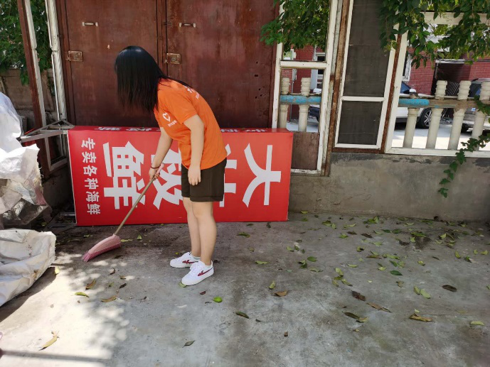 上午,许昌学院美术与设计学院“弘扬家乡新风尚,描绘美丽新农村”社会实践队队员陈子怡、卢红宇在村委会的安排下到周庄村帮村民们打扫卫生,这是两名实践队队员在周庄村进行扶贫工作的第十天。