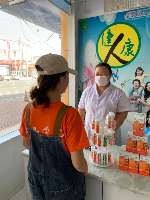 郭雅欣同学今天来到了街边的零售药房,为药房里的工作人员宣讲战疫故事。郭雅欣同学讲述的是蓝天救援队驰援武汉的抗疫事迹,她在讲演时说到,“蓝天救援队勇往直前的奉献精神值得每个人去尊敬和学习,正是这些前线的抗疫战士为我们撑起了安全可靠的防护伞。”队员们宣讲时的热情能够感染每一个倾听者,他们用自己的实际行动传递民族精神,描绘祖国成长。