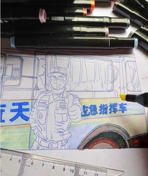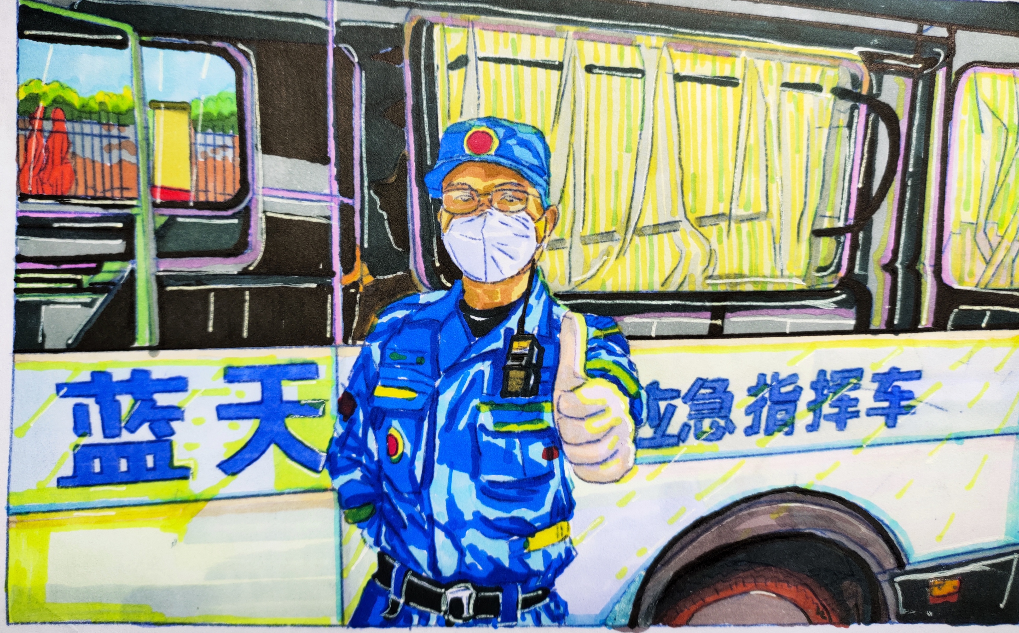 实践活动即将进入收尾阶段,队员们也在抓紧时间为宣讲队做最后的工作。今天姚梦雨同学创作了一幅关于中国援助外国物资的彩铅画,画面中是一列中国合肥援助乌兹别克斯坦的首都塔什干的火车,捐赠的物资包括手套、防护服、口罩等。除了捐赠物资之外,我们国家还向世界各国分享了疫情防控和诊疗方案,派出医疗专家组赴各国分享抗疫经验。姚梦雨同学这样解释这幅画的意义,“人道援助无国界,无论是支援医疗物资,还是派遣专业医疗团队远赴海外,中国都在积极承担自己的国际责任,和各国共进退,共命运。”有人说,这场疫情目前的形势可以用“中国上半场,世界下半场”来描述,而情况逐渐好转的中国,也正在用行动回馈世界。姚梦雨同学用绘画的方式向社会讲绘了我们国家的大国风范,灾难往往最能考验人性,同时也最能考验一个国家的气度。