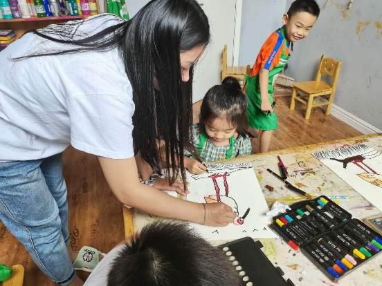 为了响应习近平总书记在十九大报告中提出的“青年兴则国家兴,青年强则国家强,青年一代有理想、有本领、有担当,国家就有前途,民族就有希望。许昌学院美术与设计学院“弘扬家乡新风尚,描绘美丽新农村”社会实践队于7月10日上午九点半在周庄便民服务中心二楼的会议室开展了“志智双扶,从小梦到中国梦”的主题活动。实践队队员们各司其职,让这些小朋友们在学习的同时又收获了友谊。为了解决孩子们所受教育不同级别的问题,实践队队员们决定先了解学生的学习进度,然后制定相应的教学计划,分阶段对应指导教学,将所学知识传授给这群渴求知识的孩子们。同时实践队队员们也询问了孩子们以后的梦想,鼓励他们积极向上,努力学习,激励他们带着梦想飞得更高更远,实现自己的梦想,实现中国梦。从这群实践队队员身上完美的体现出了文明,和谐,敬业,友善的社会主义核心价值观。