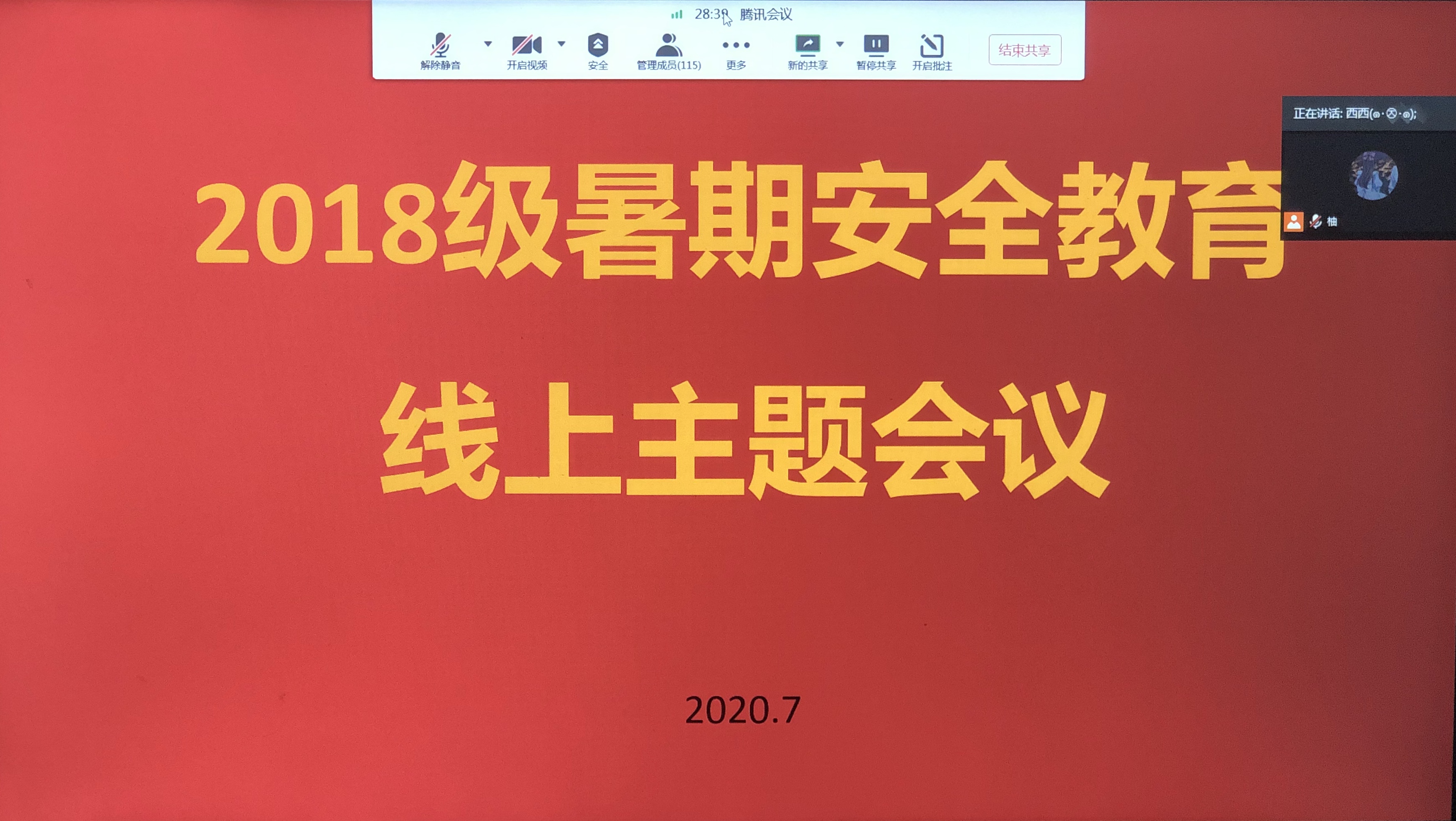 会议由王哲媛老师主持。王哲媛老师首先询问了最近受洪涝灾害影响地区同学们的近况,表达了关心,并提醒同学们注意防护。随后,王哲媛老师表示,暑期是安全事故的高发期,学生居家期间的安全教育务必引起我们的重视,并强调居家期间要注意疫情防控、消毒安全、交通安全、饮食安全、消防用电安全、网络安全等多个方面。
