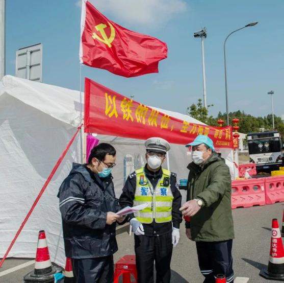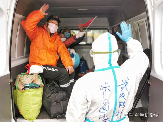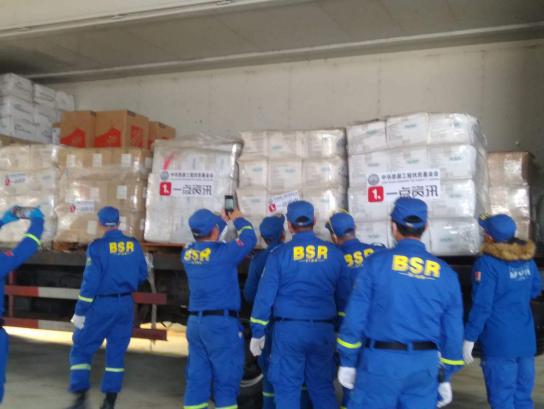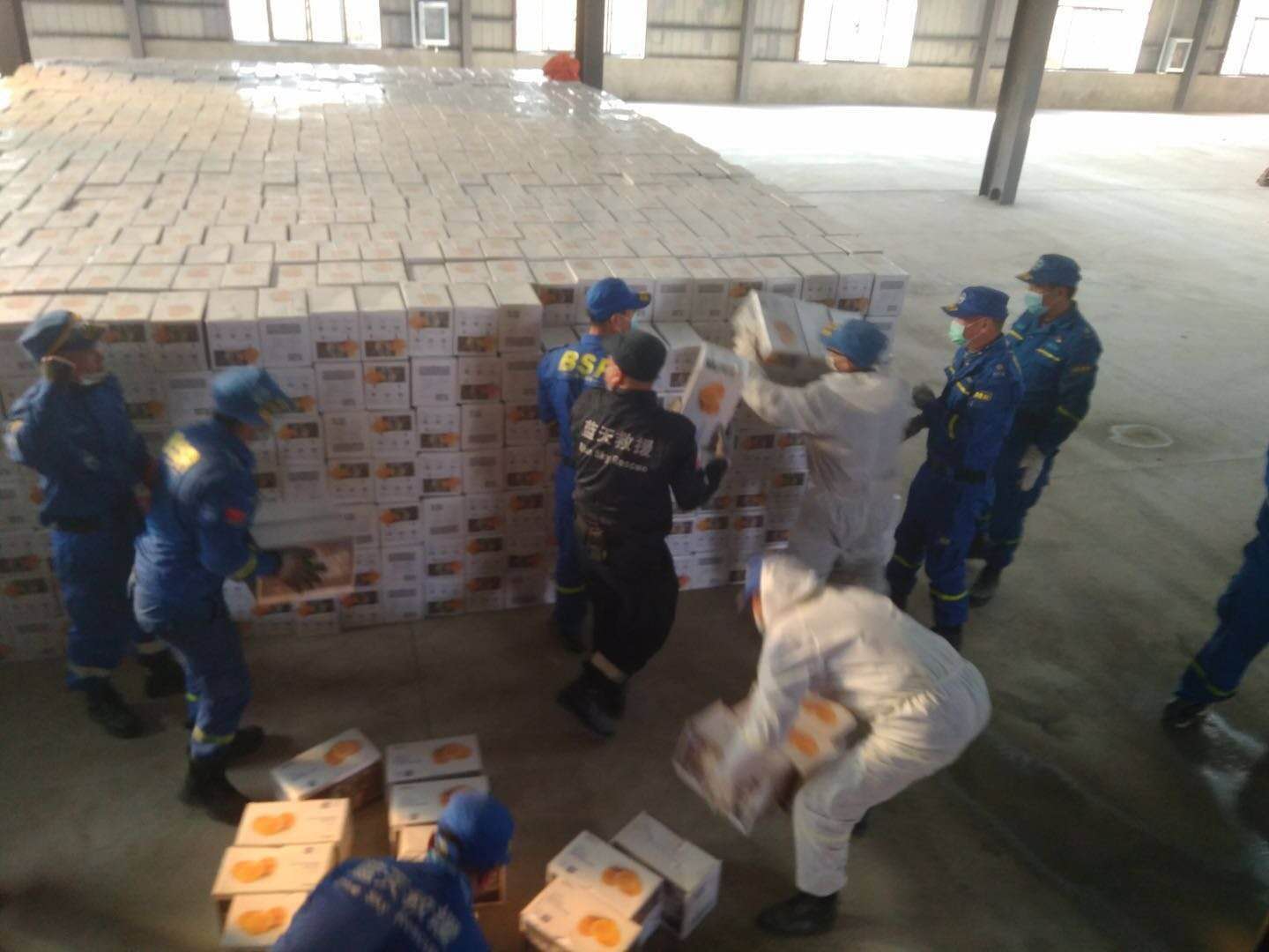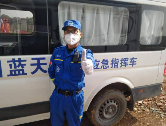 蓝天救援队在武汉排队进行体温检测 蓝天救援队在武汉搬运各地捐赠物资