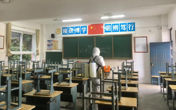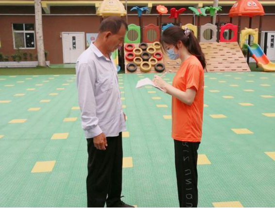 赵美同学在采访放学回家的高中生 刘婷婷同学在采访幼儿园消毒工作人员