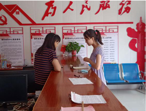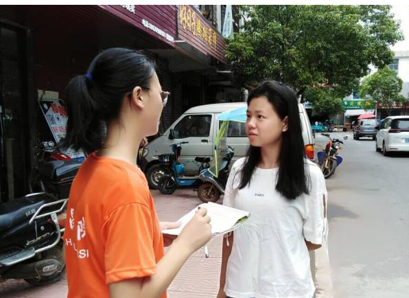 曾艳花同学在家乡的中学进行宣讲活动 姚梦雨同学在采访家乡村委会工作人员