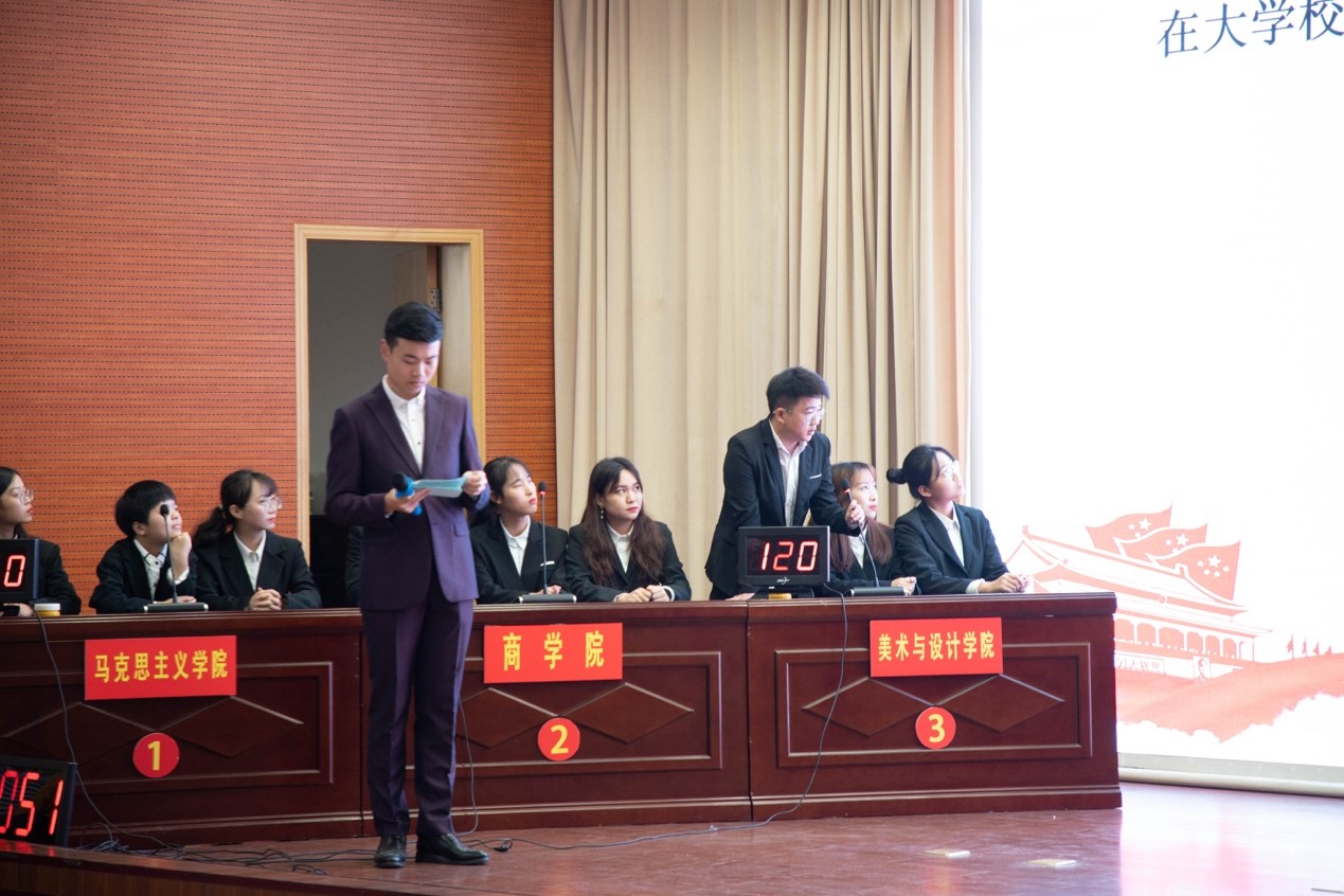 11月27日下午,由党委统战部主办、教育学院承办的许昌学院第四届大学生中国特色社会主义民族宗教知识抢答赛决赛在学术报告厅举办。我院学生孙振航、周付一方、王舒霖和李熙媛代表我院参加了此次比赛。