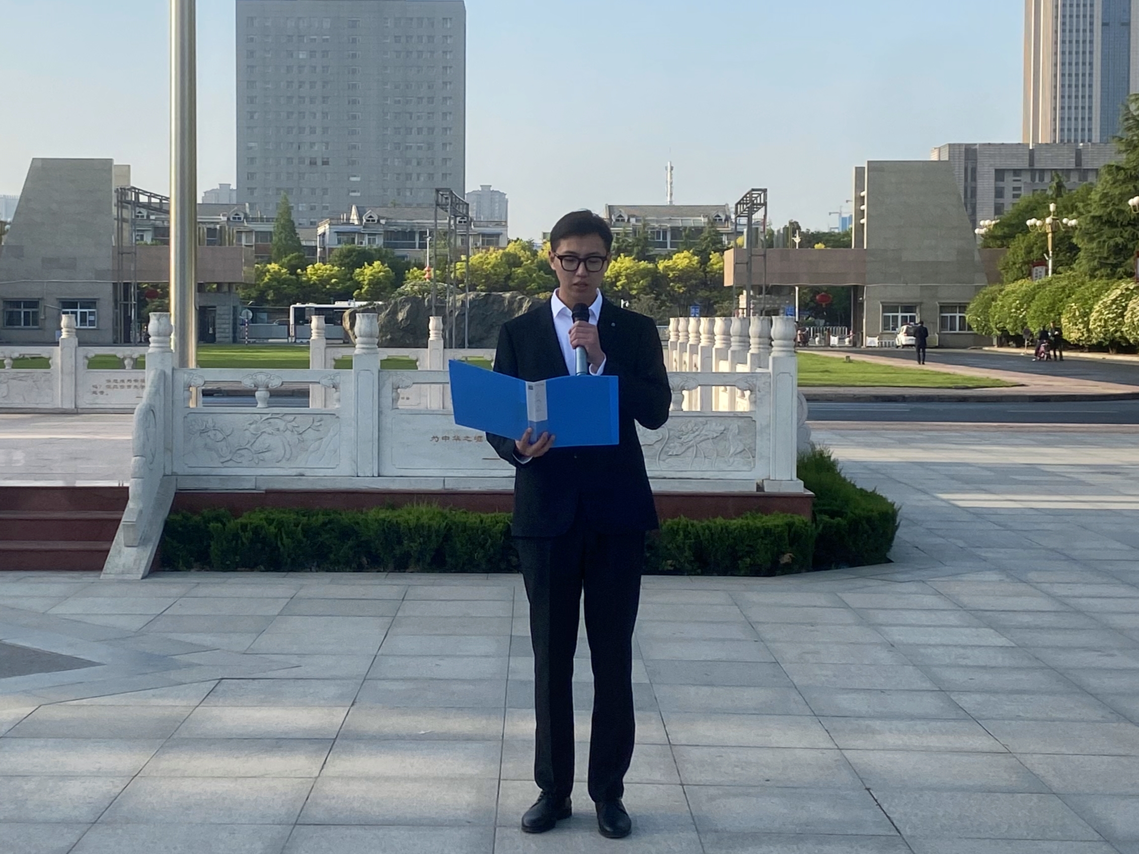 4月19日早上6点40分,我院于弘毅广场举行升旗仪式,院党委副书记吴艳艳、19级辅导员杨雷乐、20级辅导员桓坡以及20级全体学生参加活动。本次升旗仪式由我院学生会团支部书记杨晨瑶同学主持。