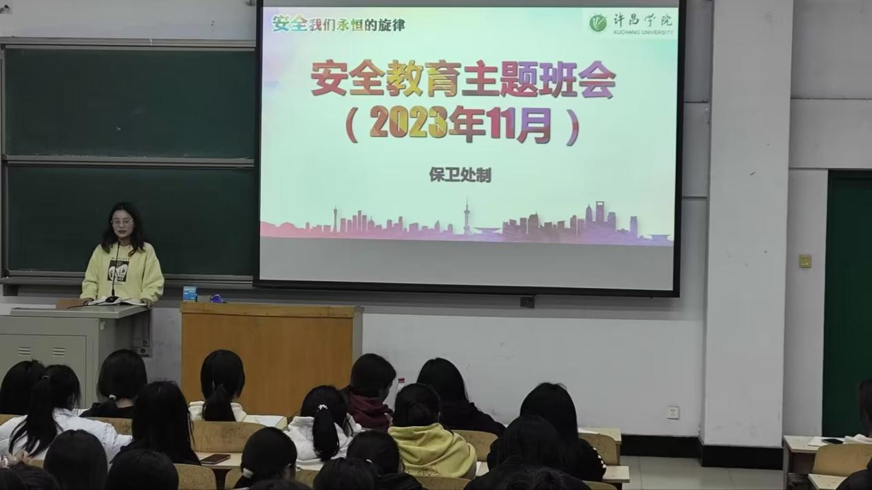 为提高同学们的安全意识,2023年11月7日19点,我院在A合五教室开展“安全教育主题班会”,本次会议由23级辅导员贺宁主持,23级全体本科生参加。