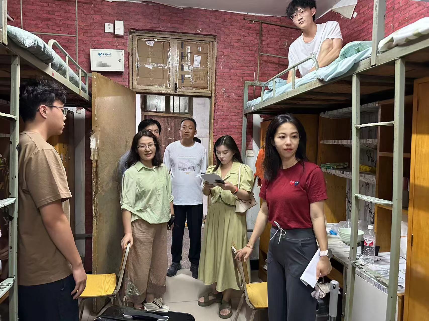 9 月 8 日下午,为深入了解2024级新生入校生活情况,我院党委书记闫爱敏带领党委副书记、副院长和团学工作人员走访学生宿舍慰问新生。