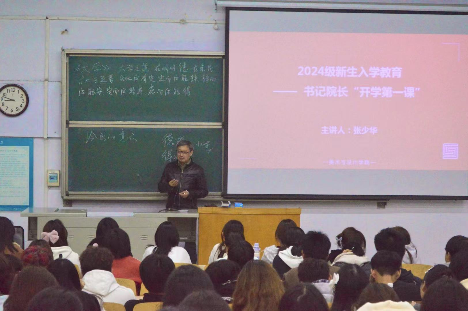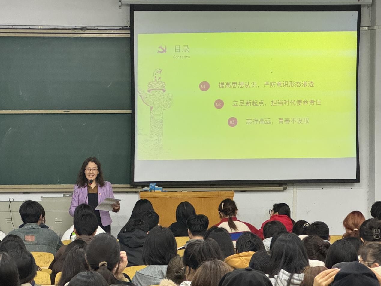 为进一步提升新生思想政治水平,帮助新生适应大学环境,我院于11月11日晚在蕴韬楼A合四及A合五教室开展新生“思政第一课”入学教育活动,由我院党委书记闫爱敏和院长张少华讲授,2024级全体新生参加。