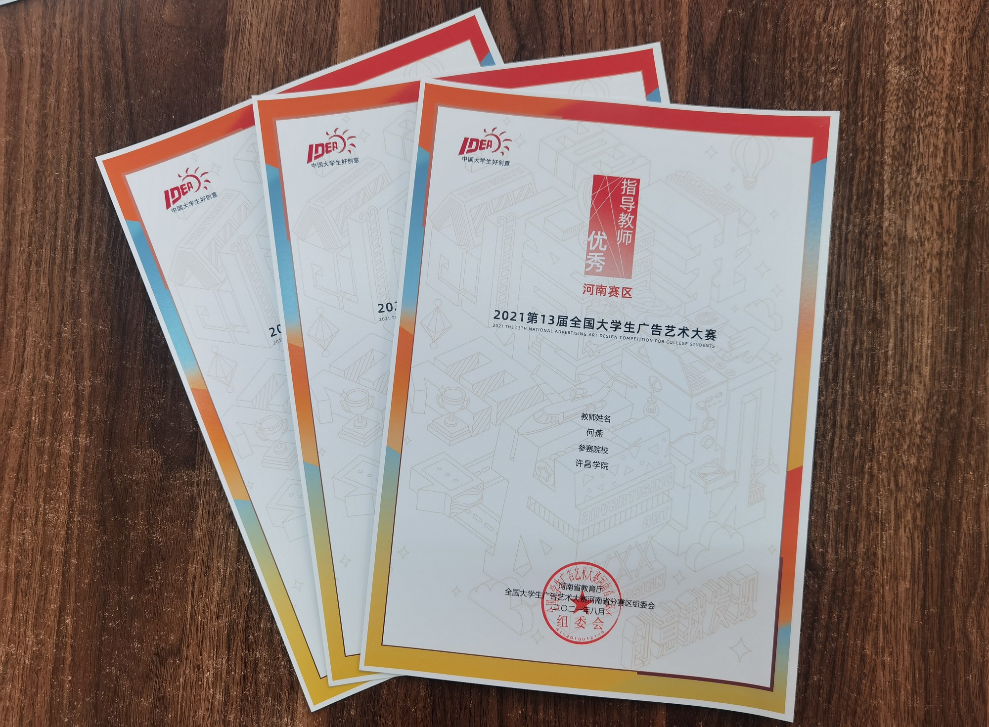 近日,2021年第13届全国大学生广告艺术大赛河南省分赛区的评选结果出炉,我院师生积极备赛,最终荣获二等奖3项,三等奖4项,优秀奖5项的好成绩,其中3名老师荣获“优秀指导教师”称号。