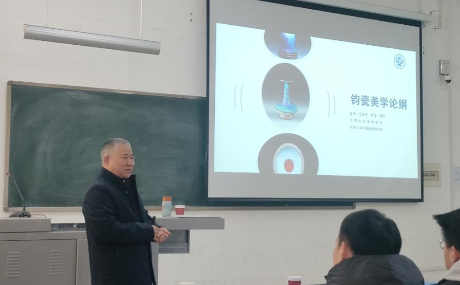 2023年11月29日上午,河南大学美术学院教授(设计学)、博士生导师(艺术学理论),河南大学中国陶瓷研究院院长王洪伟教授在艺术楼为我院师生做了第三期“钧瓷文化论坛”做《钧瓷美学论纲》专题学术讲座。讲座由学报编辑部主任郭现军教授主持。