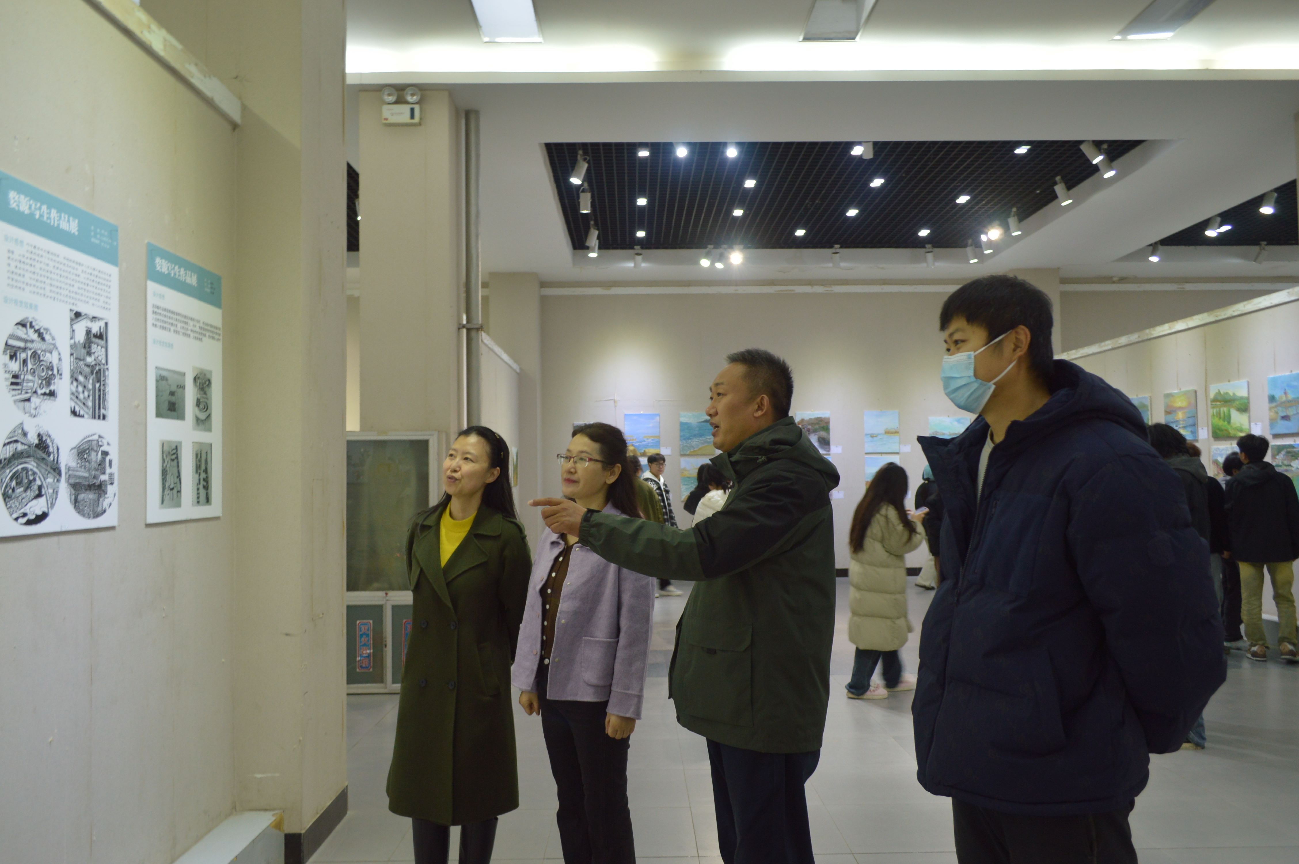 学生代表郭静垚发言,此次写生作品展凝聚着老师们辛勤耕耘的汗水。同时,也让同学们清楚地认识到,艺术的路还很长,需要不断地学习和实践。这些作品,不仅仅是一幅幅画作,更是对生活的感悟和对艺术的追求,怀揣感恩和对艺术的执着追求,砥砺前行,争取创作出更多的优秀作品。