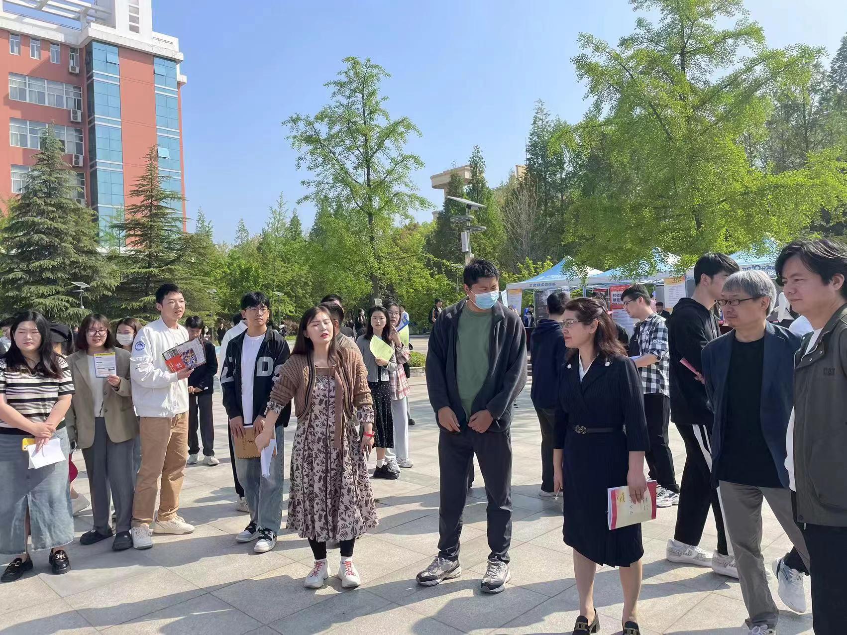 4月12日,许昌学院2024届毕业生春季双选会在弘毅广场如期举行,我院党委书记闫爱敏,院长张少华,党委副书记张晓柯,就业专干赵鹏飞及2020级辅导员桓坡一行人积极组织我院2024届毕业生到场参观、了解招聘企业具体情况,与墨上彩虹美学馆,许昌启美设计工程有限公司等公司沟通交流,详细咨询用人需求、薪资待遇等具体招聘信息。为即将踏入职场的毕业生和众多企业搭建了一座交流沟通的桥梁。本次双选会不仅是一次简单的招聘活动,更是毕业生们逆袭职场、追逐梦想的起航之旅。