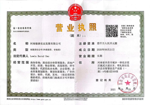 河南德唐实业发展有限公司,成立于2020年8月,中外合资企业。公司团队以德方为主,中方协助,多专业协同,具备国际化多元视野,职能构成科学完善,是一支国际化的专业项目管理团队。公司秉承“重视市场、深挖需求、务实创新,高效进取”的经营理念,坚守“专注、高效、交流、链接”的文化理念,融合多年行业经验、国际化团队和政策资源三方面优势,全面构造公司的核心竞争力,打造国际一流、客户首选的商业、产业管理企业。