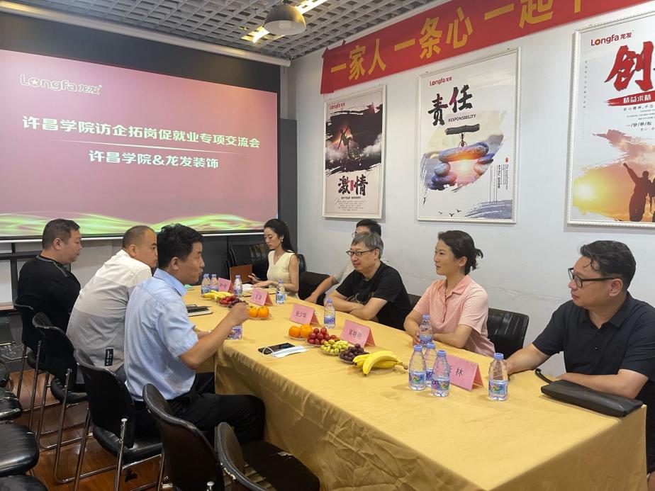 按照《许昌学院开展访企拓岗促就业专项行动实施方案》“稳就业”“保就业”工作部署要求725钧瓷文化与产业研究中心主任兼美术与设计学院副院长张少华党委副书记吴艳艳副院长王菲及专业老师、辅导员等一行5人先后到北京龙发建筑装饰工程有限公司许昌分公司许昌市建安区新天地商贸中心昌拉法柒陆设计有限公司许昌壹一工程管理有限公司河南林派装饰设计有限公司进行走访调研