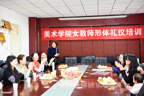 为全面贯彻党的十九大精神和习近平新时代中国特色社会主义思想,进一步加强女职工思想引领,强化维权服务,团结动员广大女职工做新时代幸福女性、展新征程巾帼风采,为学校改革发展再立新功;3月8日下午,美术学院女教职工在会议室开展女教师形象礼仪培训,此次活动由吴艳艳书记主持开展,我院全体女教职工参加。