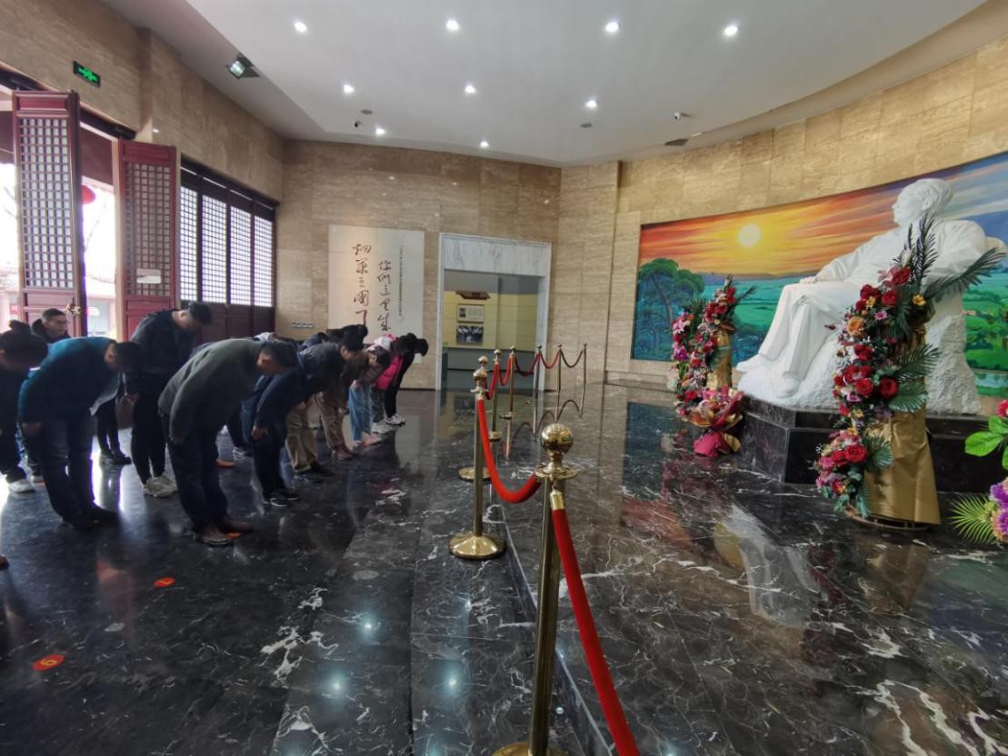 活动的第一站是襄城县毛主席视察纪念馆。我们党和新中国的缔造者毛泽东同志曾于1958年8月7日到襄城视察,在这片盛产烟叶的热土上留下了光辉的足迹。走进纪念馆,大家首先向馆中央的毛主席像鞠躬致敬,深深表达了对一代伟人的怀念之情。