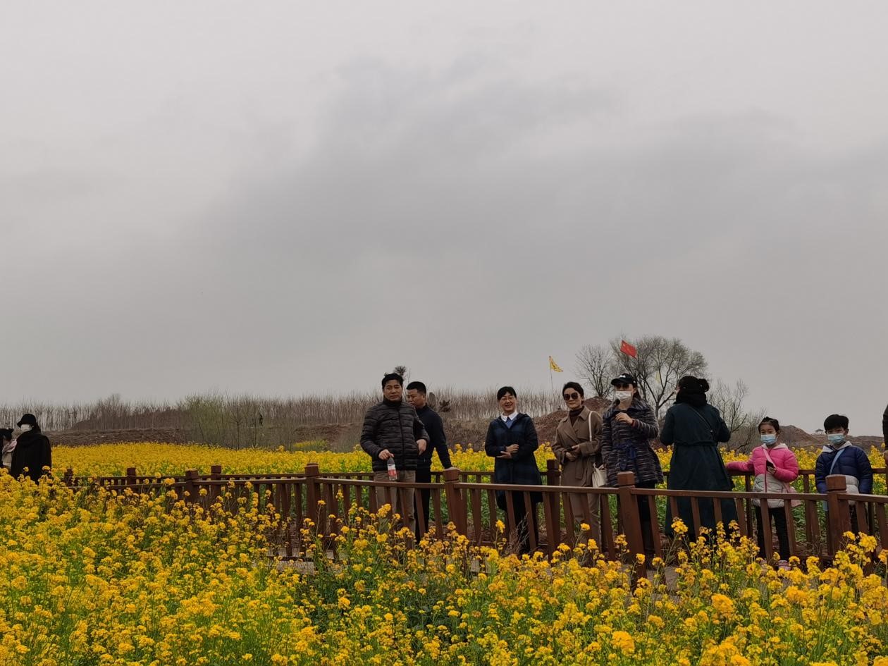 活动的第二站是位于襄城县首山,这里连续数年成功举办了具有特色的油菜花节,我院教师来到位于首山的2.3万亩油菜花田进行春游活动。成规模的油菜花被种植出华表与建党100周年的图案,深刻反映了当地经济繁荣发展来自于党的正确领导。大家行走在美丽的油菜花田中,感受了浓郁的春天的气息,也深深感受到祖国大地的壮美景象。