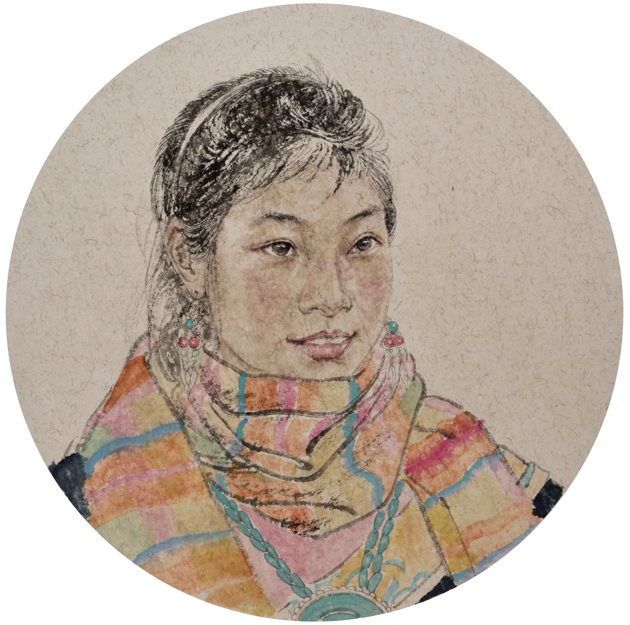 李岩《卓玛》中国画45X45cm