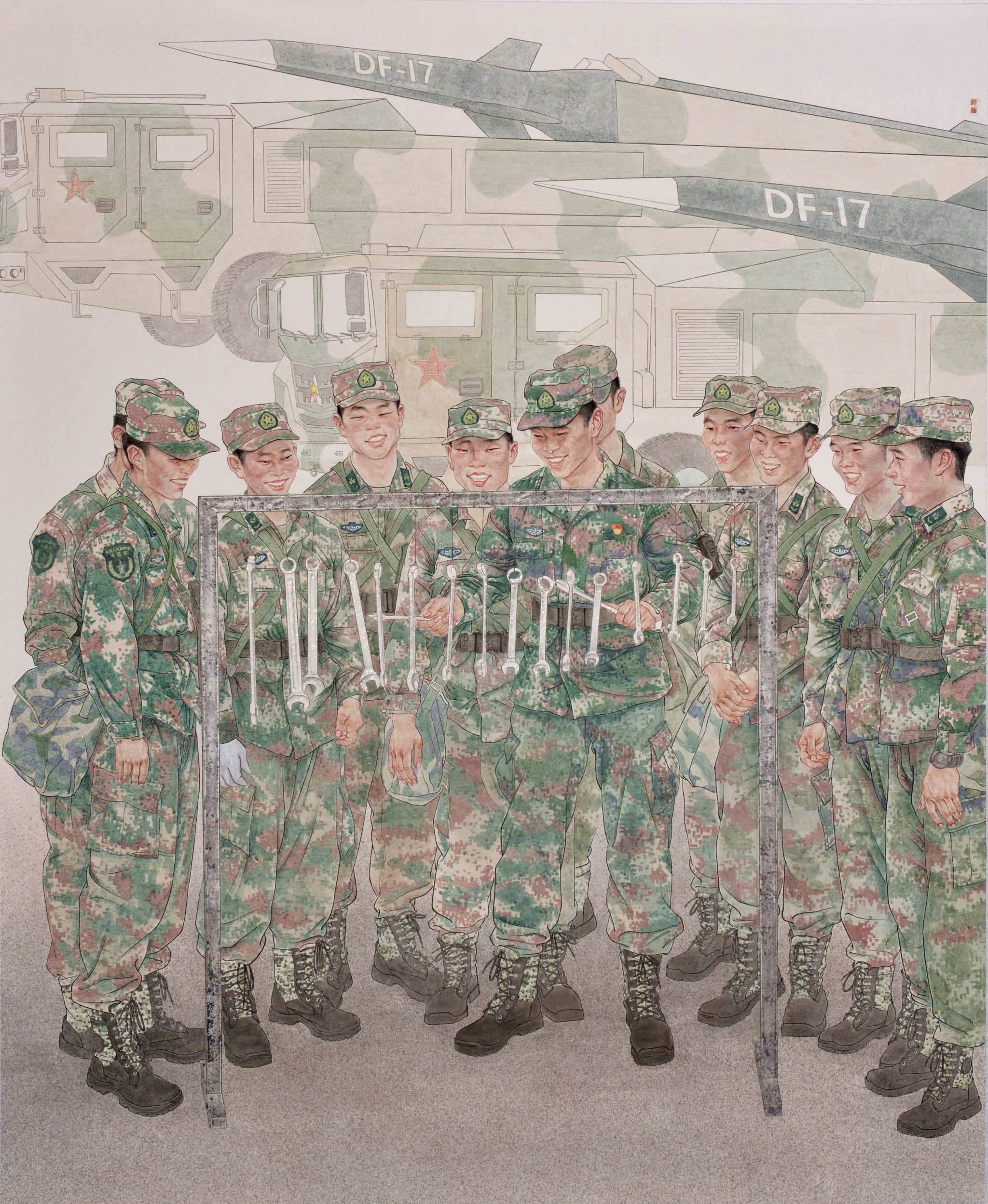中国画作品《长缨之歌》,入选第十五届全军美术作品展,中国美术家协会,2023年