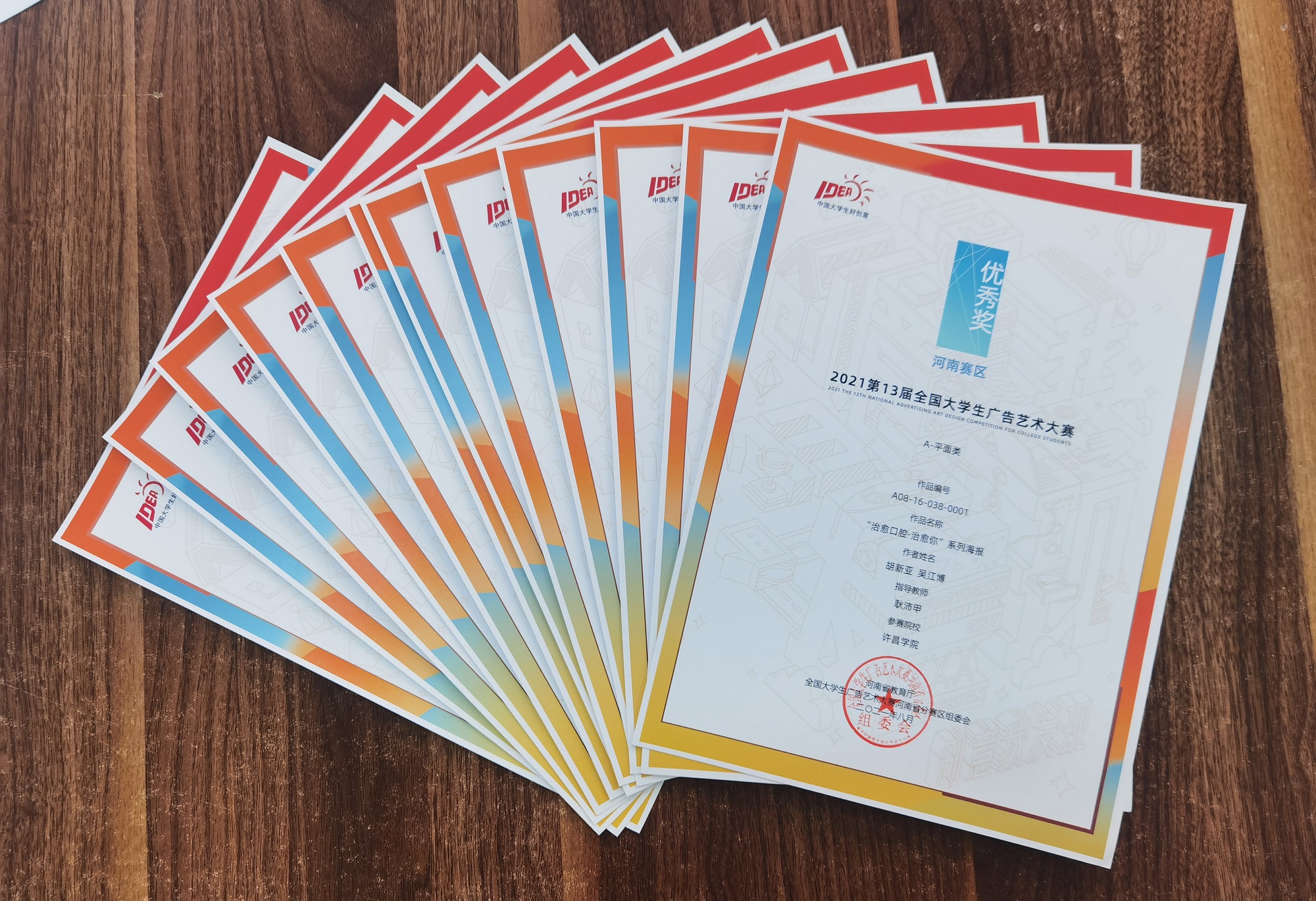 近日,2021年第13届全国大学生广告艺术大赛河南省分赛区的评选结果出炉,我院师生积极备赛,最终荣获二等奖3项,三等奖4项,优秀奖5项的好成绩,其中3名老师荣获“优秀指导教师”称号。