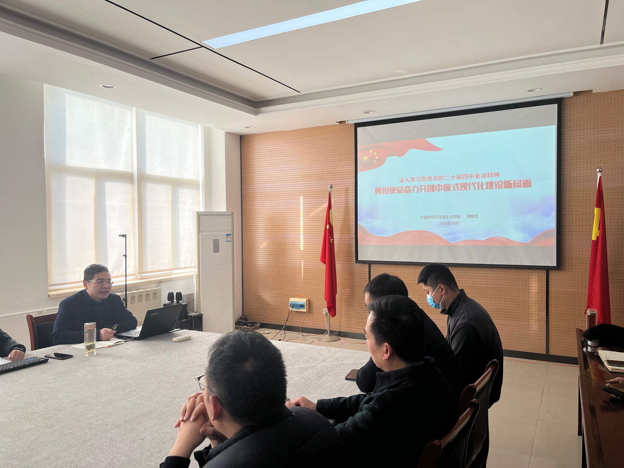 11月28日下午,美术与设计学院在艺术楼三楼会议室召开党委理论学习中心组(扩大)会议,专题学习党的二十届四中全会精神。马克思主义学院院长周耀宏教授受邀作专题辅导报告,学院领导班子成员、全体教师参加会议。