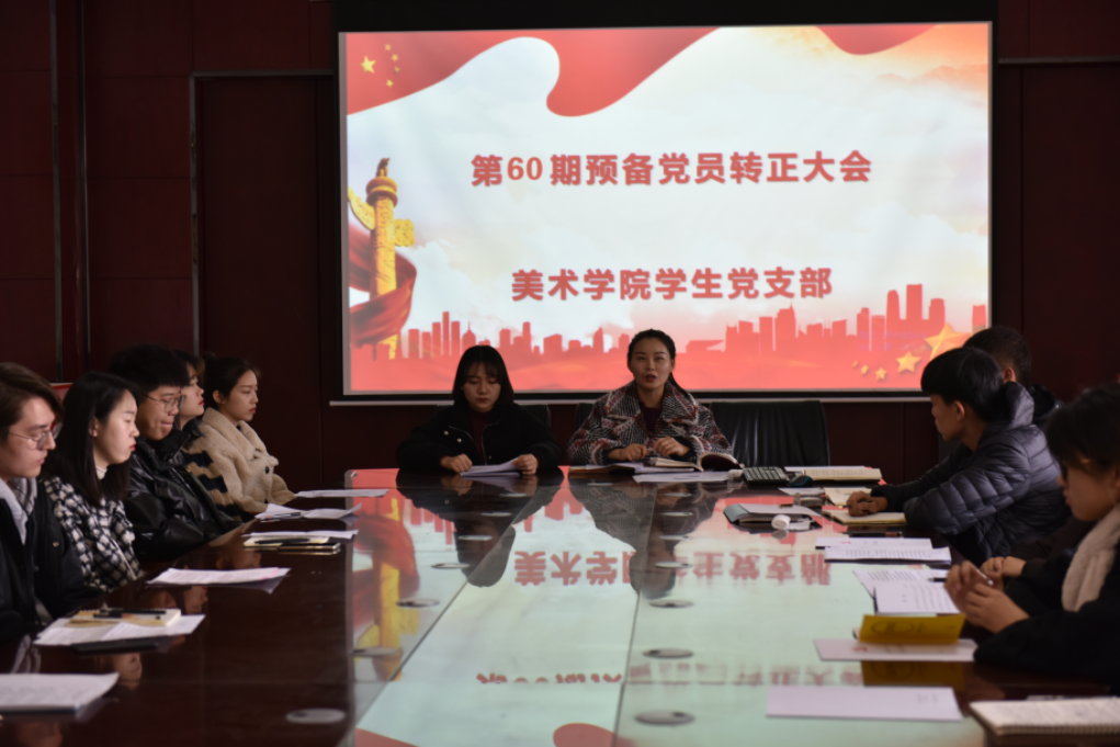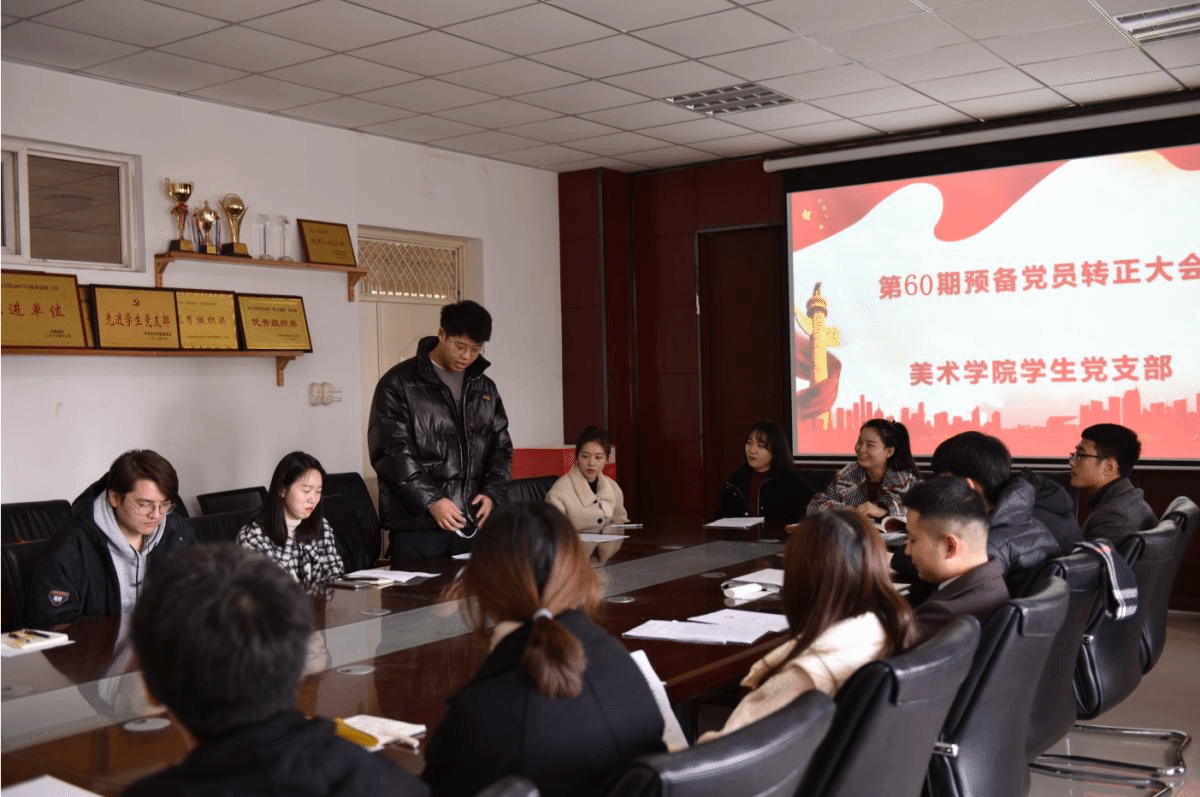 2019年12月13号,美术学院学生党支部于艺术楼422会议室召开预备党员转正大会。会议由我院学生党支部书记杨璐主持,学生党支部全体党员、预备党员参加。