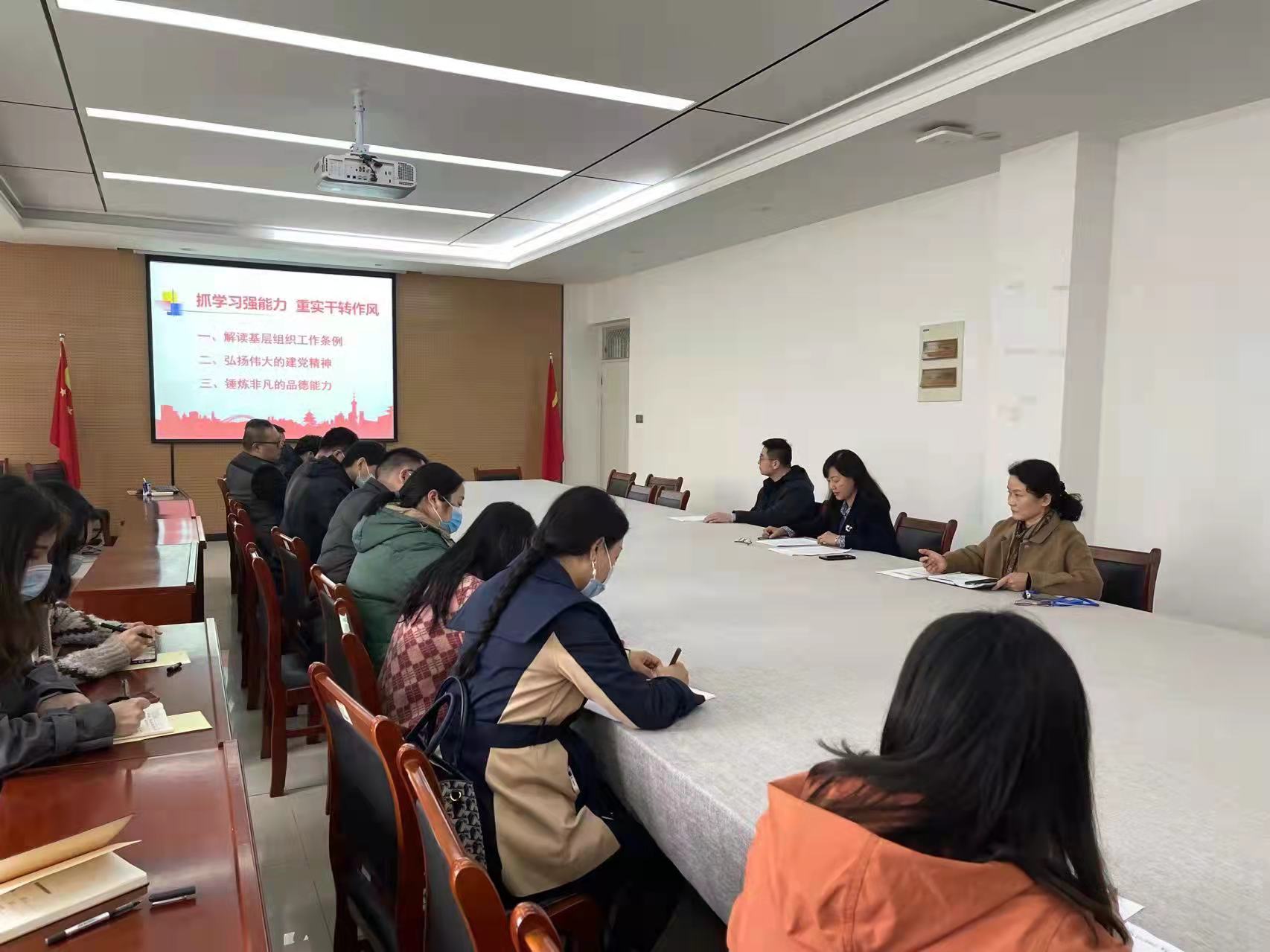按照学校“能力作风建设年”文件精神,张利书记以《抓学习强能力,重实干转作风》为题,围绕加强基层党建队伍能力建设,提升党务工作能力,对党支部书记和支委进行专题培训,她从三个方面进行了具体讲解:一是落实《中国共产党普通高等学校基层组织工作条例》,二是弘扬伟大建党精神,三是锤炼非凡的品德能力。培训会上,张利书记还结合基层党支部的实际工作,详细阐释了习近平总书记提出的“七种能力”、“八种本领”,并对各支部落实“三会一课”制度和主题党日活动提出了有针对性的建议。