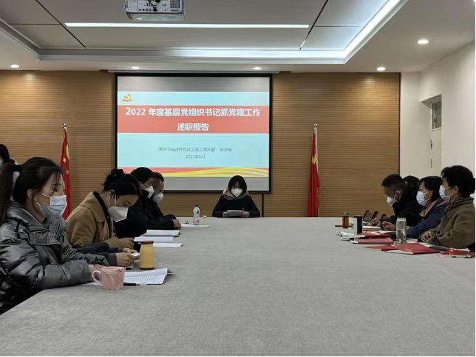 述职评议考核采取现场述职与书面述职相结合、全覆盖的方式进行。会上,我院6位党支部书记重点围绕2022年度我院党建工作,从加强党支部政治功能、履行政治责任情况、落实基层党建工作任务情况、推动党建工作与业务融合发展等方面,对党支部党建工作特色亮点和突出问题进行了总结和分析,对今后党支部党建工作的努力方向、改进措施作出了谋划和思考。