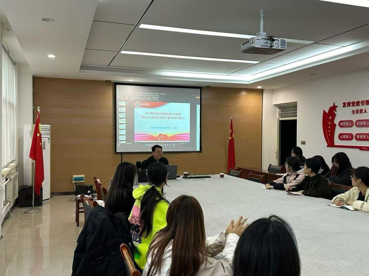 为强化入党积极分子的党性观念,深入学习贯彻新时代党的民族方针政策,提升政治理论素养,进一步夯实我院入党积极分子队伍建设,11 月 15 日下午,我校党委统战部部长王彦于三楼会议室讲授了一堂题为“学习贯彻党的民族宗教方针政策,努力成为堪当民族复兴重任的时代新人”的专题党课,全体分党校学员踊跃参与学习。