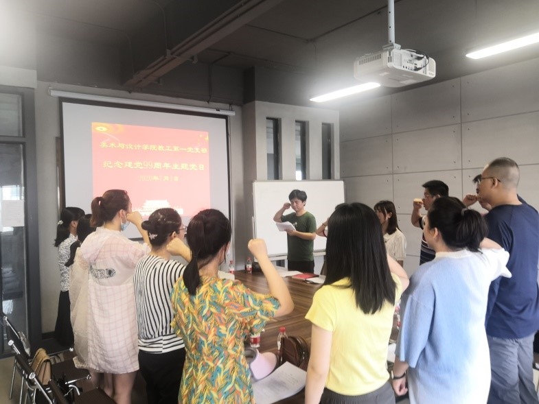 2020年7月1日,在朝着伟大梦想持续奋进中,我们迎来了中国共产党建党的99岁生日。为继承党的优良传统、发扬党的优秀作风,美术与设计学院教工第一党支部组织支部党员同志,开展了以“忆党史、学党章,重温入党誓词”为主题的党日活动。