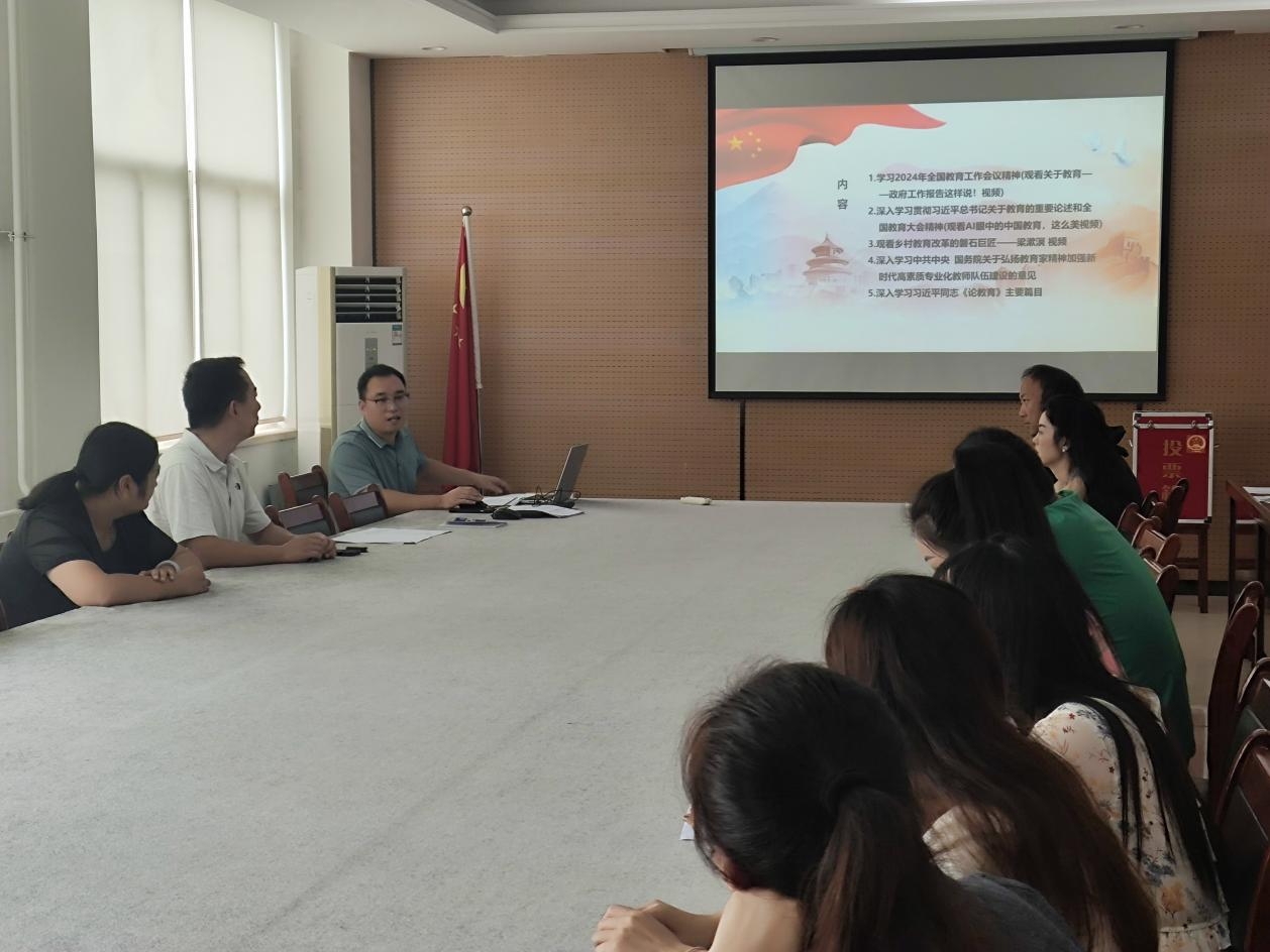 活动中,支部成员首先观看了关于2024年全国教育工作会议的视频资料,深入了解了会议提出的教育强国建设目标、全面提高人才自主培养质量等要求。大家一致认为,教育是国家发展的基石,作为教师,要肩负起培养社会主义建设者和接班人的历史使命。