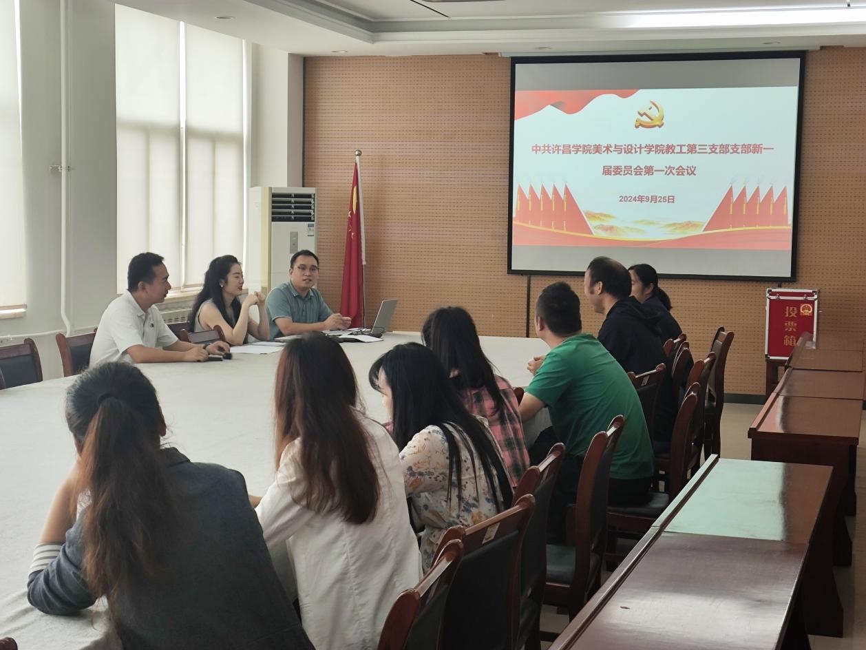 9月25日,许昌学院美术与设计学院教工第三党支部召开党员大会,顺利完成了党支部换届选举工作。