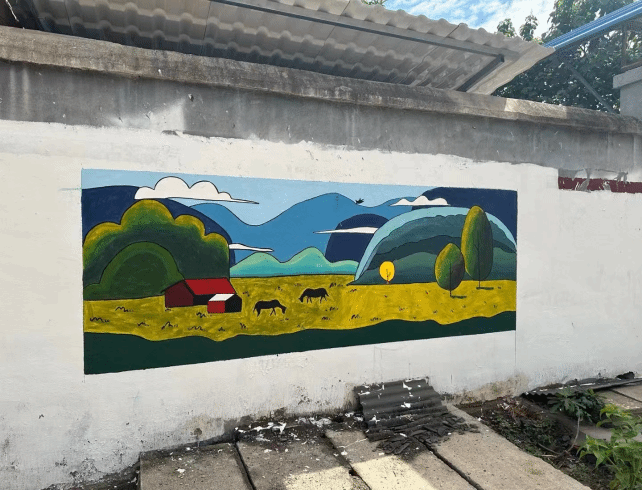 2.融入互动:邀请村民、儿童观参与创作,增强村民归属感;开设“艺术小课堂”,通过色彩认知、涂鸦创作、手工拼贴等简单艺术形式,教留守儿童绘画基础,激发其想象与创造能力,培养审美意趣。