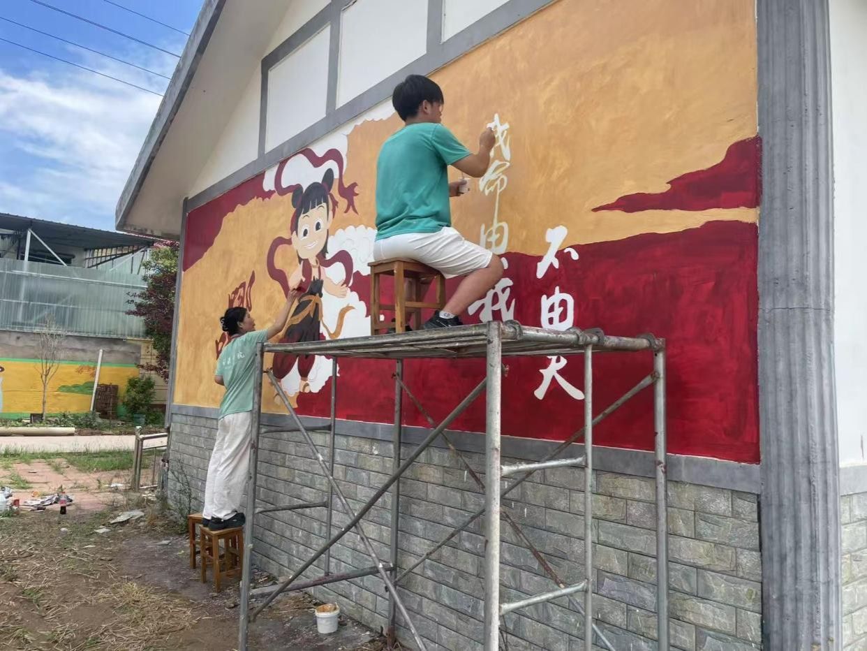 6月26日至7月4日,许昌学院教工第三党支部党员教师李岩带领学生赴建安区岗杨村开展墙绘服务,以专业美术技能助力美丽乡村建设,服务乡村振兴。