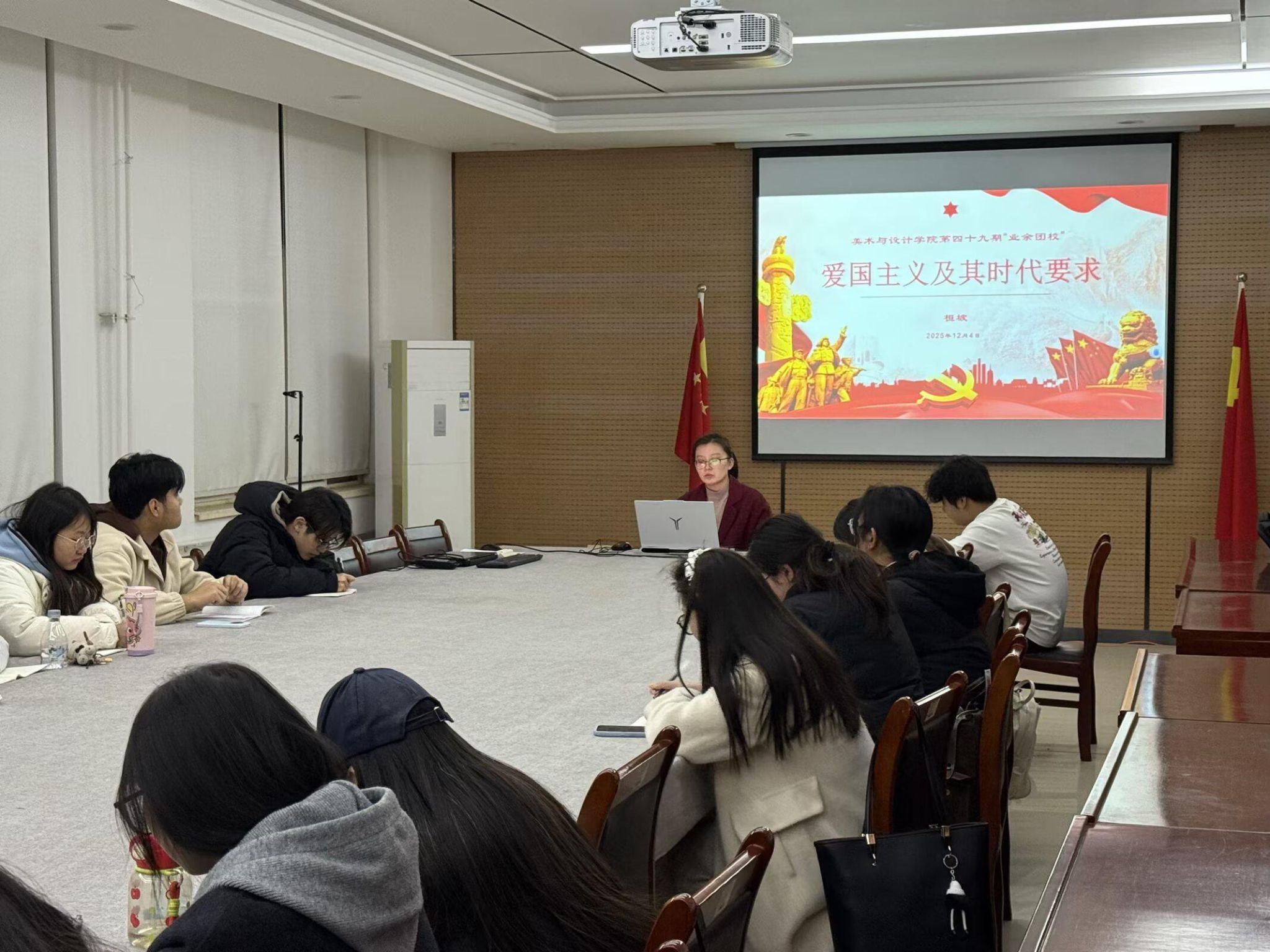 12月4日,我院于艺术楼三楼会议室组织召开《爱国主义及其时代要求》的主题团课,本次团课由桓坡主讲。她以“什么是爱国主义”“新时代爱国主义的内涵与要求”“青年学子如何践行爱国主义”为逻辑主线,结合美术与设计领域的独特视角展开讲解。课程中,她展示了大量蕴含爱国主义精神的经典美术作品和设计案例,通过分析作品的创作背景、表现手法和精神内核,引导团员们直观感受艺术与爱国情怀的深度融合,启发大家思考如何在专业学习和创作中践行爱国主义精神。