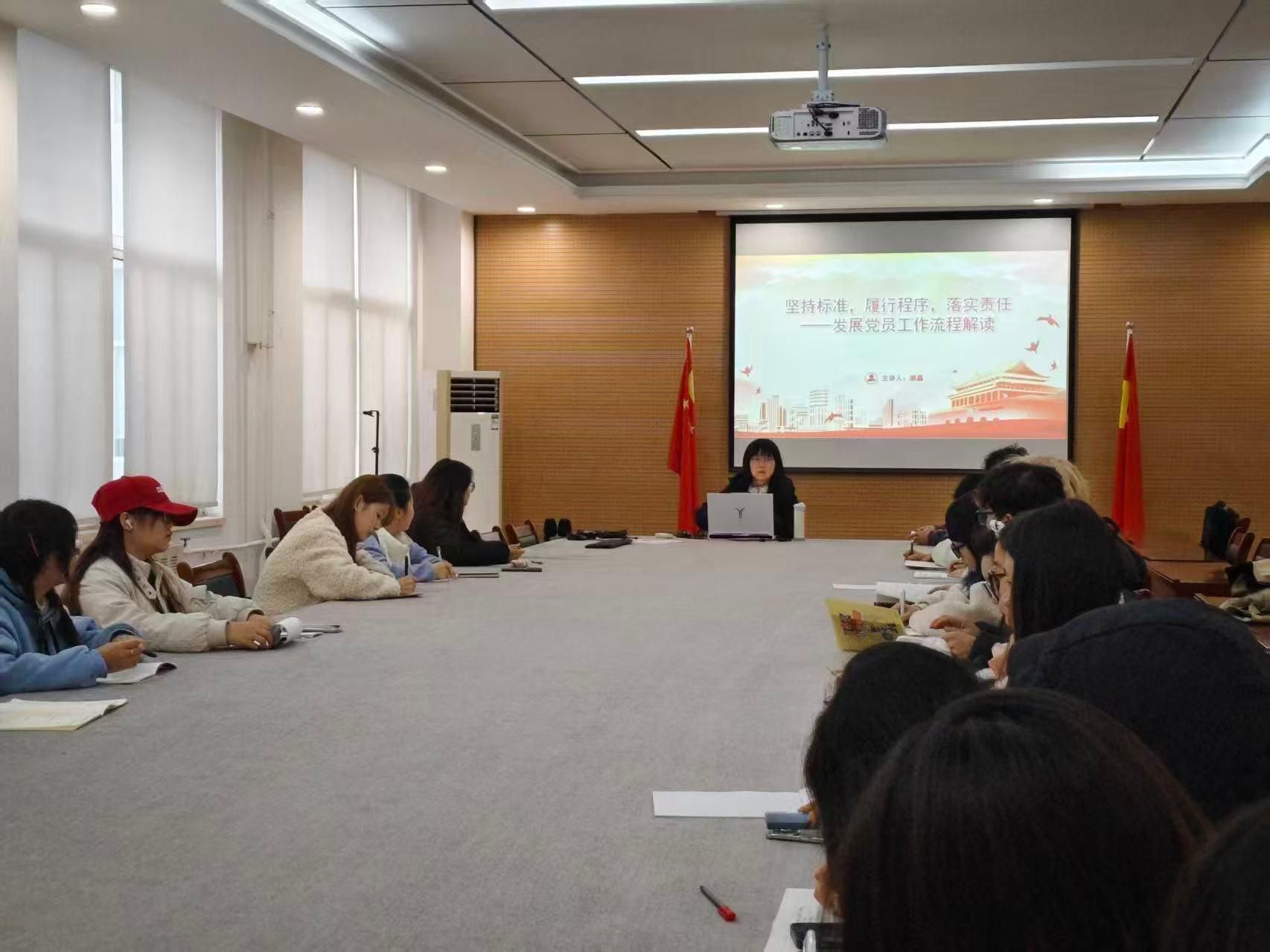 12月10日,我院于艺术楼三楼会议室组织召开《党员发展流程解读》主题团课,此次团课由胡晶主讲。她从党员发展的各个环节入手,为团员们进行了系统梳理和详细解读,并结合实际案例,对入党申请书的规范撰写、思想汇报的内容要点、政治审查的具体流程等常见问题进行了逐一说明。同时,她鼓励有入党意愿的团员青年要以高标准严格要求自己,在思想上积极向党组织靠拢,在学习和生活中发挥先锋模范作用,争取早日成为一名优秀的共产党员。