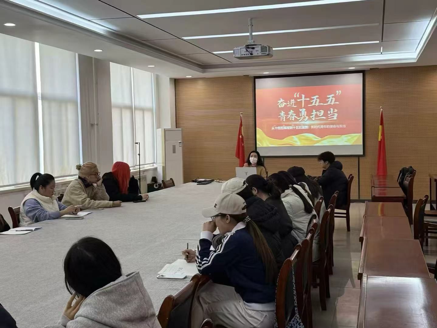 11月30日,我院在艺术楼三楼会议室组织开展《奋进“十五五”,青春勇担当》主题团课,本次团课由胡一铭主讲。她结合“十五五”规划的时代背景,从国家发展战略与青年使命担当的内在联系切入,通过生动的案例分析和深入浅出的理论阐述,引导团员们深刻理解新时代赋予青年的历史责任。她强调,作为美术与设计专业的青年学子,要将个人专业理想融入国家文化发展战略,在艺术创作中坚守文化自信,用画笔和创意讲好中国故事,以实际行动服务社会、奉献人民。