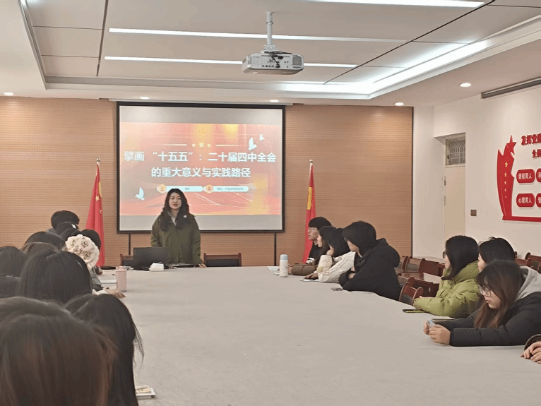 12月30日,美术与设计学院举办学习贯彻党的二十届四中全会精神青年宣讲会。校团委宣讲团成员、商学院团委副书记萧彤受邀作专题宣讲。我院各基层团组织书记、学生代表等50余人齐聚一堂,共学全会精神,共话青春使命。