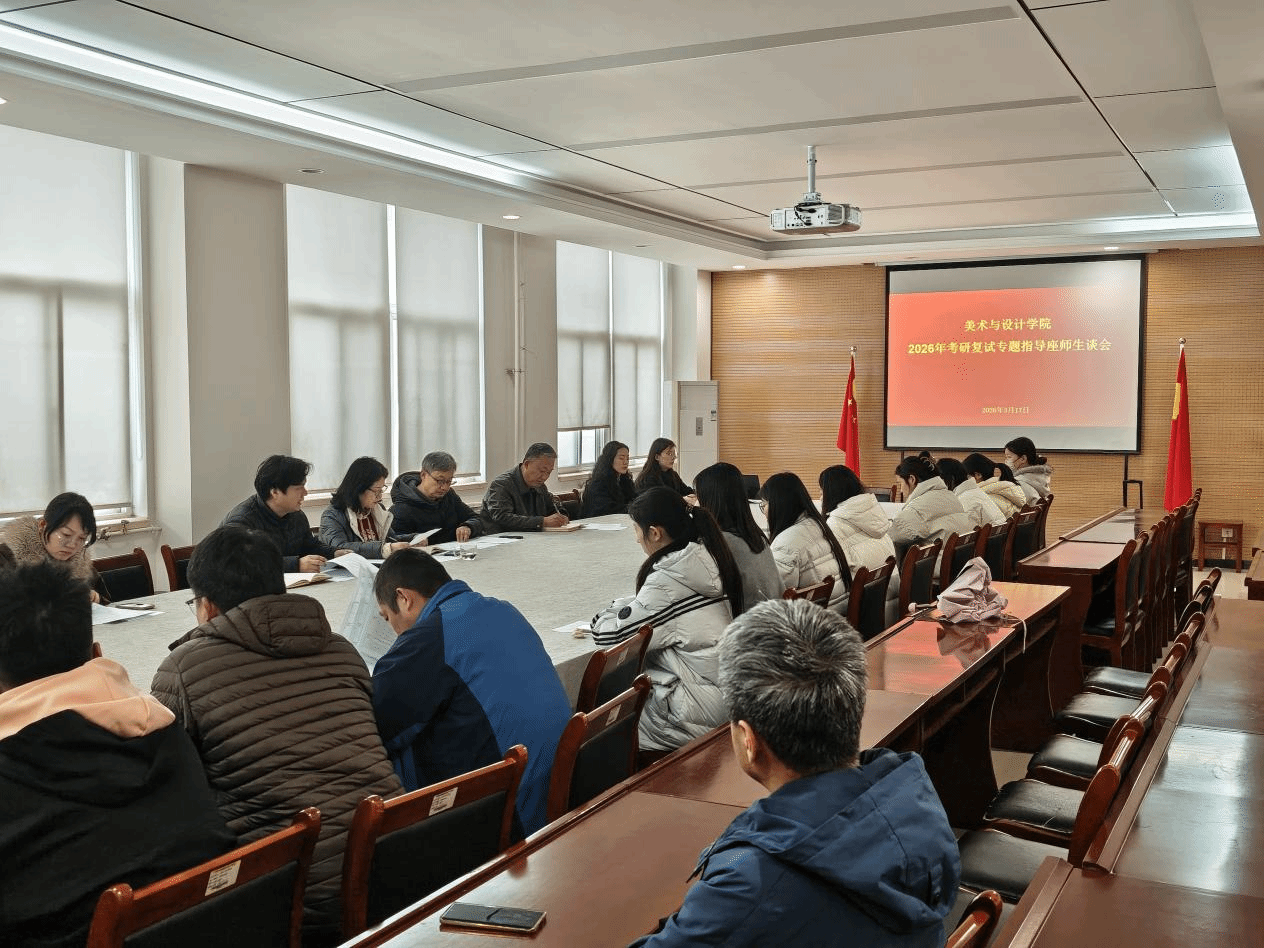 3月17日下午,我院在艺术楼三楼会议室召开2026年考研复试专题指导师生座谈会。学院党委书记闫爱敏、院长张少华、党委副书记张晓珂、副院长韩鸿友,各专业导师代表、相关辅导员及2026届考研复试学生参加会议。