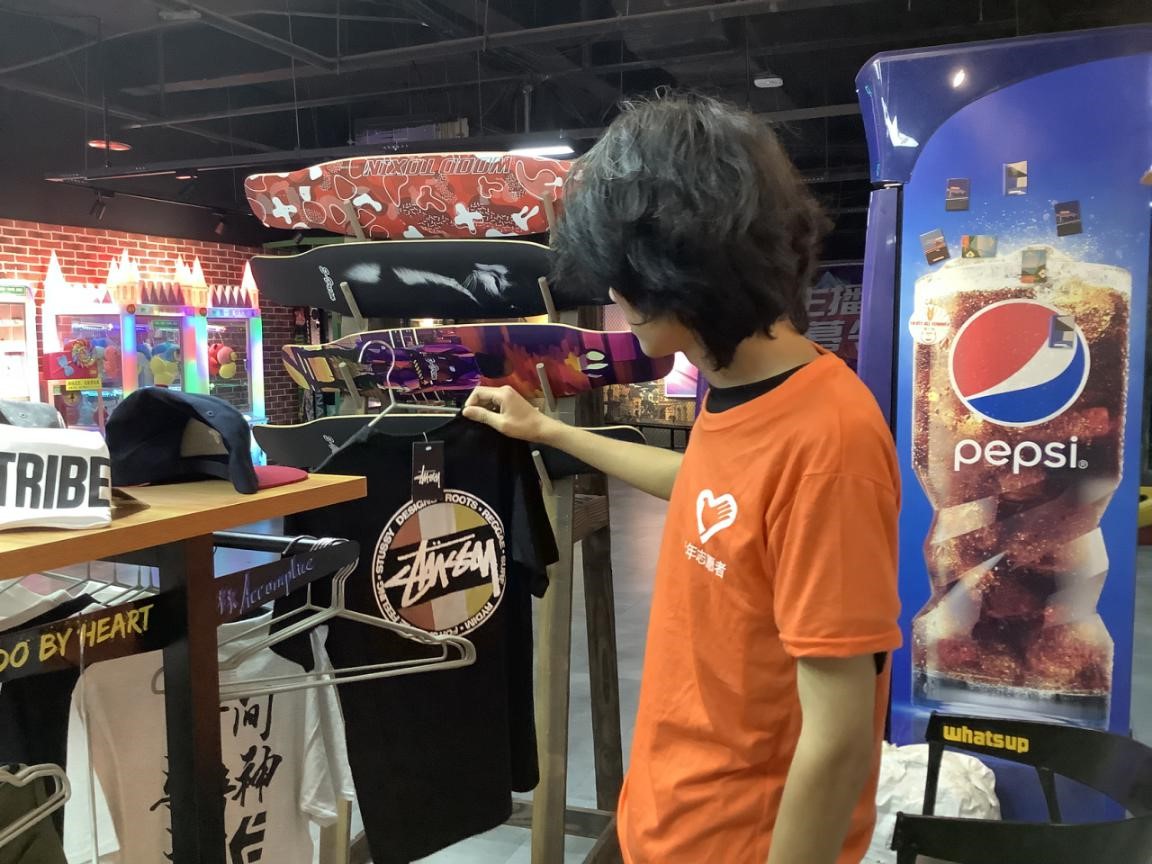 7月7日,社会实践已经接近尾声,许昌学院美术与设计学院街头乐极人社会实践队开始着手将团队的优秀设计作品打造成实物。实践队队长带着队员们前往思故台研究印花,购买服装材料。出于对滑板文化与滑板精神,以及滑手个性的考虑,团队成员们在购买服装材料的过程中,也在不断思考如何将滑板文化融入进去、服饰上印花做出怎样的效果才更符合滑手,以及服装运用怎样的布料等等,队员们从中发现问题,跟店主不断沟通去解决问题。一天下来队员们的收获满满,也对未来的收尾工作更有目标与信心。